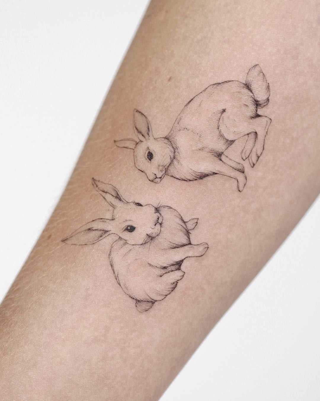 2. Minimalist Bunny Silhouettes: For those who prefer a more subtle approach, minimalist bunny silhouettes are an excellent choice. These designs focus on the basic shape of a bunny, using clean lines and negative space to create an elegant and sophisticated look. Minimalist bunny tattoos are versatile and can be placed almost anywhere on the body.
