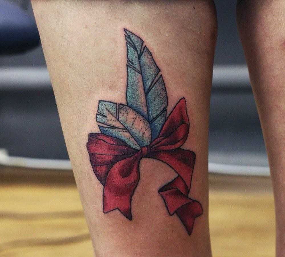 Что же касается мест, то нательный рисунок можно расположить где угодно. К примеру, задняя часть бедра — отличное место для тату с бантиками. Такая наколка будет мотивировать вас поддерживать своё тело в идеальной форме. В этом её плюс.