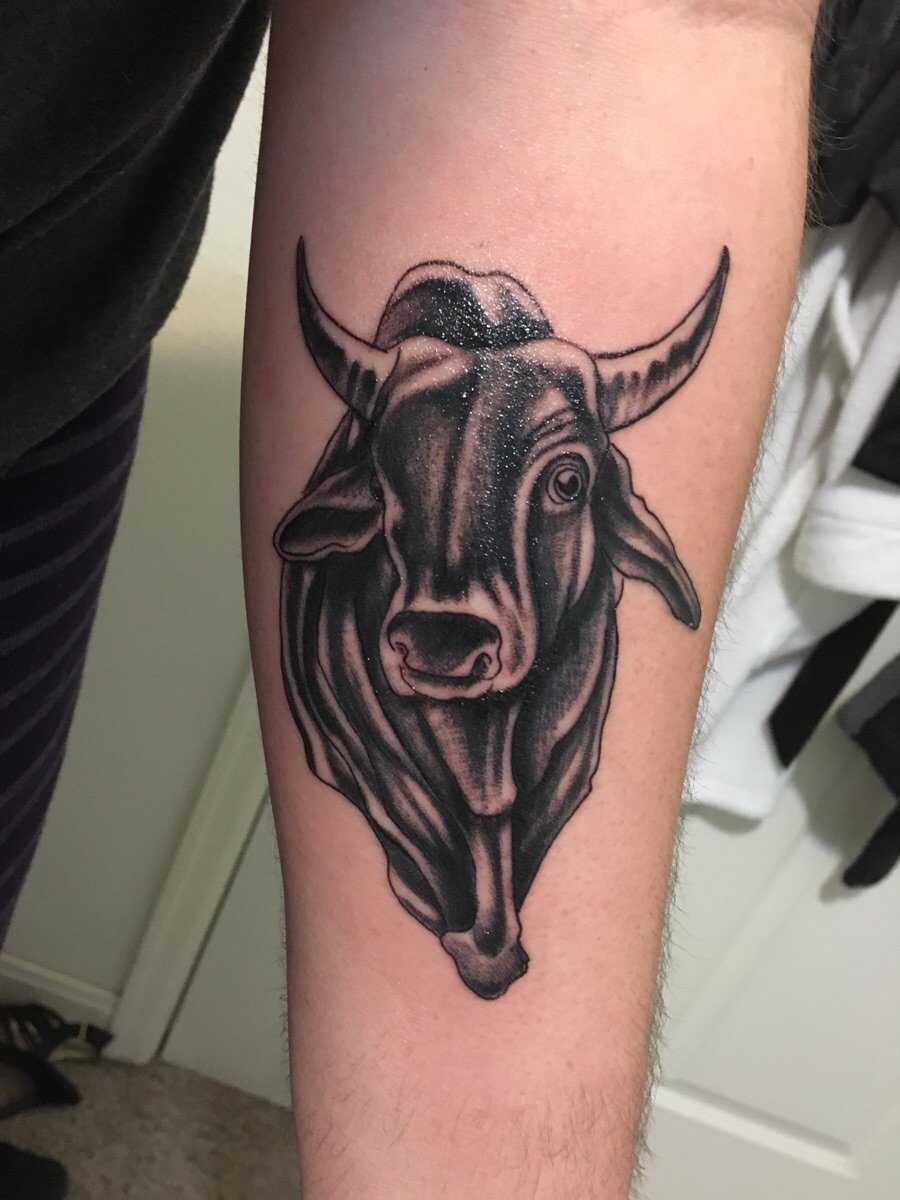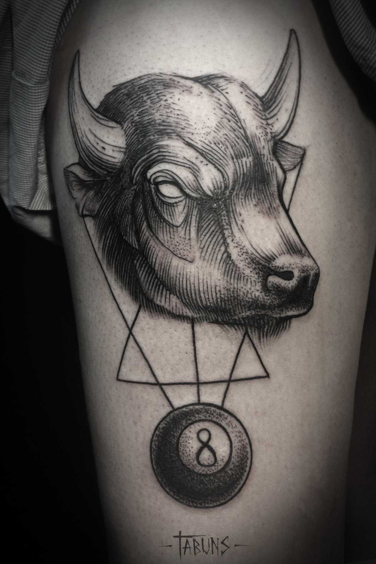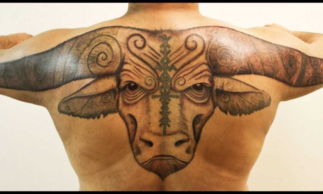 . Часто изображение быка ассоциируют с упорством, временами даже не совсем разумным. Обладатель такой татуировки привык все начатое доводить до конца, бороться со всеми трудностями, которые возникают на его пути. Однако зачастую вместо того, чтобы обойти препятствие, он готов прошибить его головой.