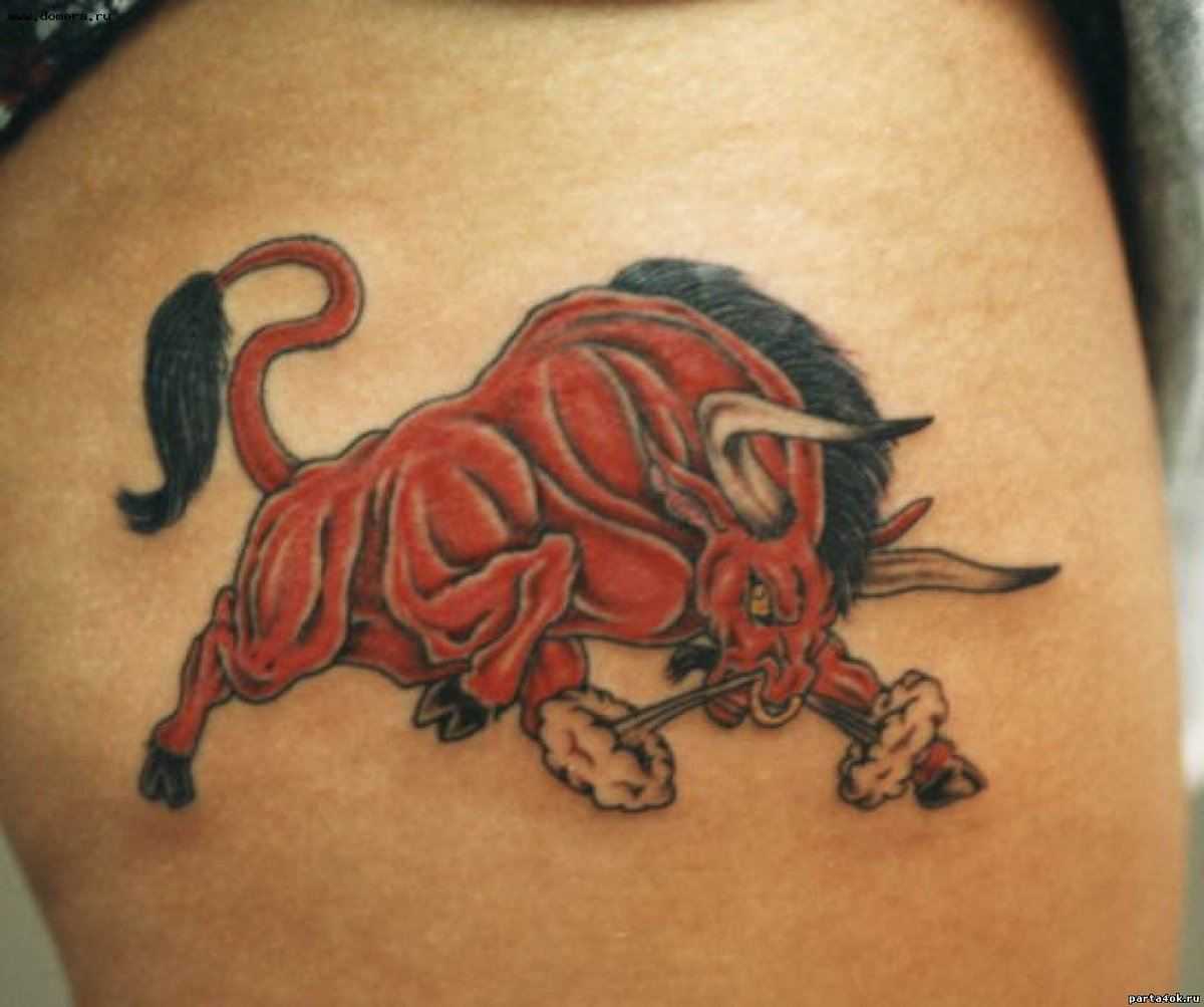 Если вы хотя бы раз видели стадо быков или одного быка, который мчится в вашу сторону, то наверняка видели в его глазах злобу и ярость. Такую картину не обязательно переживать в реальность. Даже если вы наблюдали это зрелище по телевизору, то наверняка переживали не самые позитивные эмоции. Человек, который наносит на свое тело тату в виде быка, однозначно хочет заявить миру о том, что его нужно бояться.