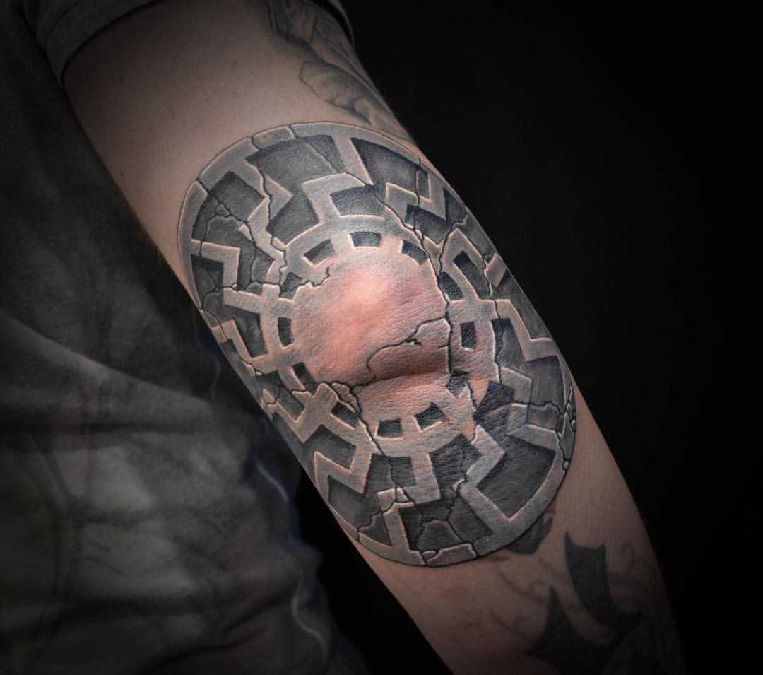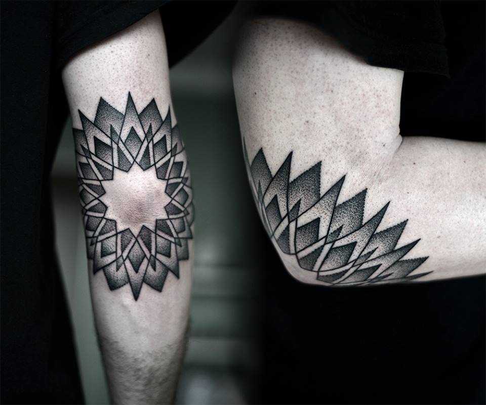 Татуировка на локте имеет богатую историю и давно сформировала вокруг нее стереотипы. Традиционно считается, что татуировка на локте может быть использована только мужчинами, но никогда не наносится сначала на тело. Многие считают, что такие татуировки связаны с преступниками, но эта связь очень слабая. Стоит отметить, что теперь такие татуировки не используются на теле, как первые, а, наоборот, дополняют общий образ тела. Желательно на локте мужчины носить изображение орнамента, абстракции или в стиле олд скул.