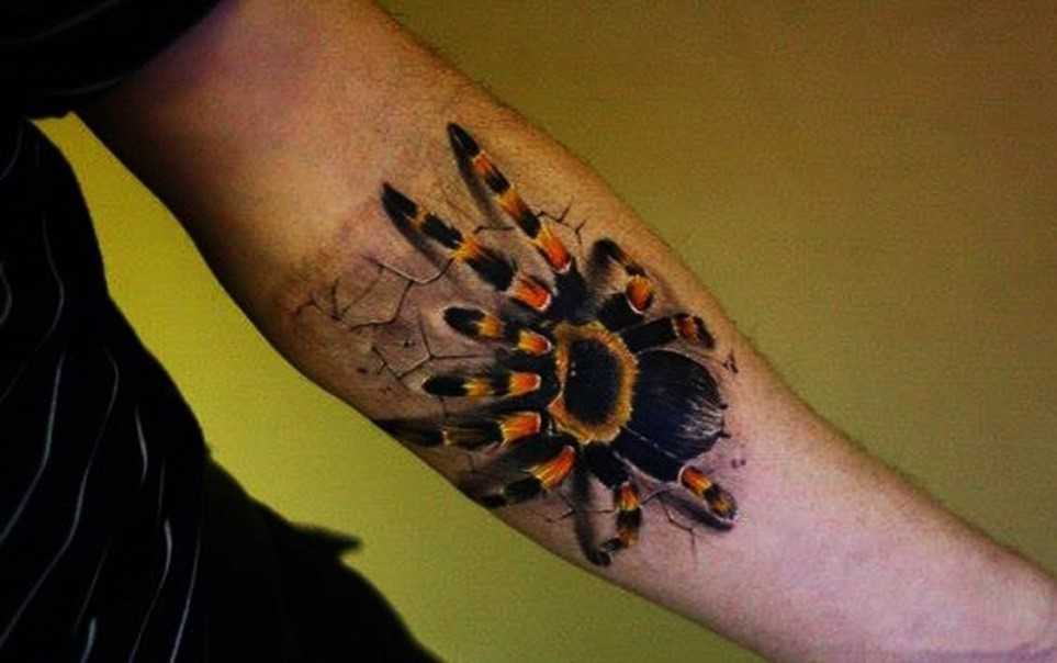 - Огромный птицеед — символизирует лидерские качества. Это указывает на то, что обладатель тату занимает особое положение в обществе, он популярен у доброй половины человечества. Кроме того, у него есть внутренняя и духовная сила, но в то же время он развит физически, не всегда контролирует свои порывы и даже может поднять руку на других.