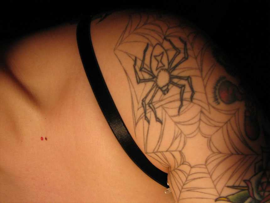 Тату паук на шее свидетельствует об особом отношении к жизни у владельца. Если насекомое не проявляет агрессии, это свидетельствует о спокойствии владельца татуировки. Паук на плече — самая распространенная татуировка. Даже палец не так удачен, как плечо. Даже на мордочке насекомое смотрится эффектно. Это связано с тем, что рисунок визуально бросается в глаза.