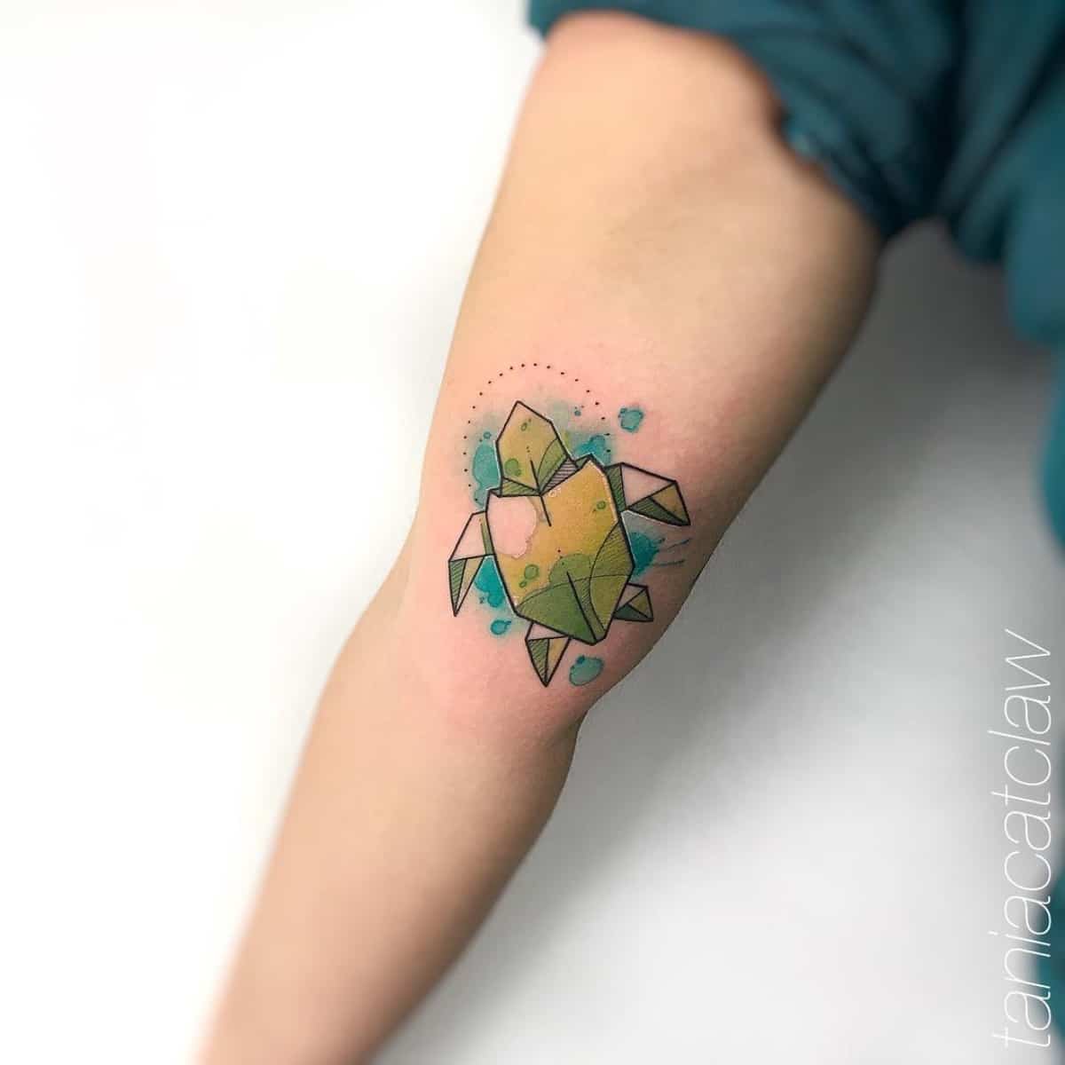 Акварель . Тату черепахи для девушек часто выполняется в данном стиле. Нежные цвета, мягкие