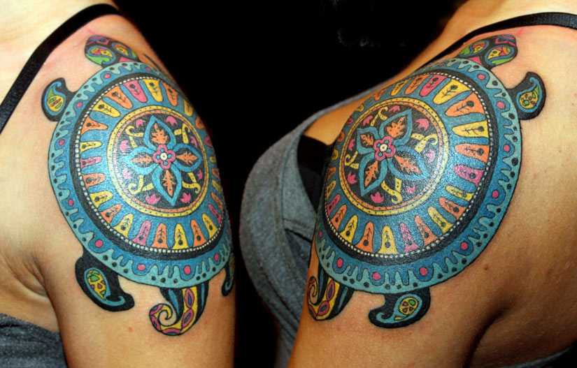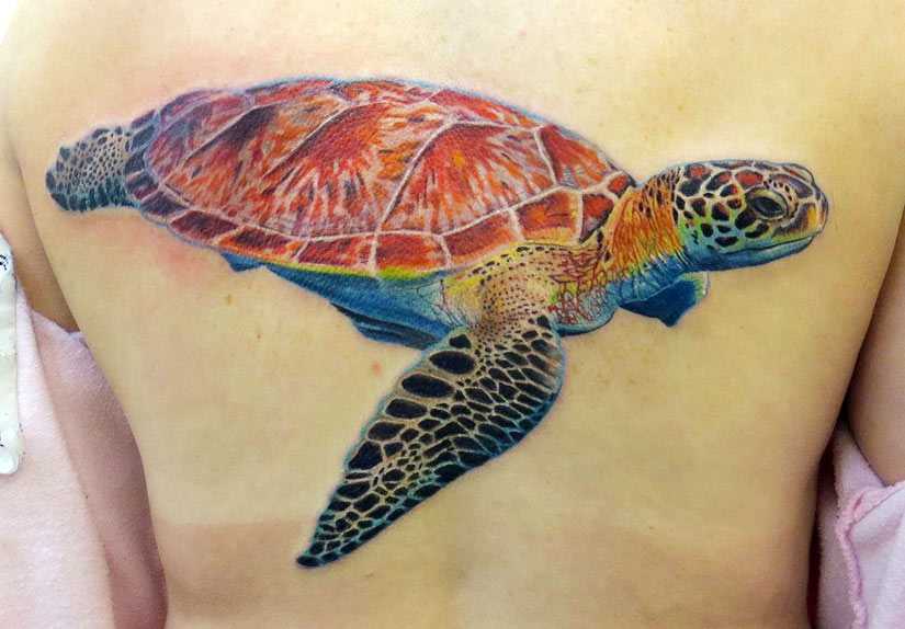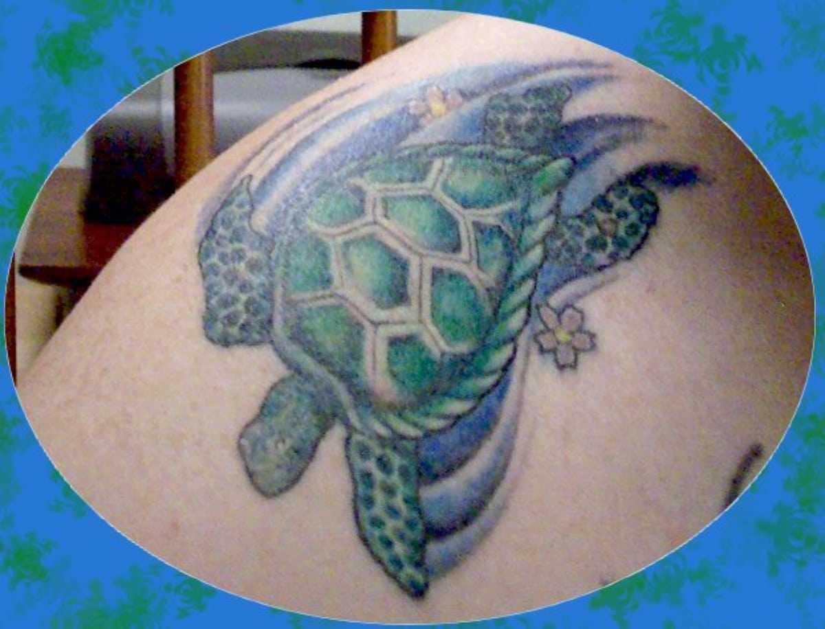 цветная татуировка с черепахой