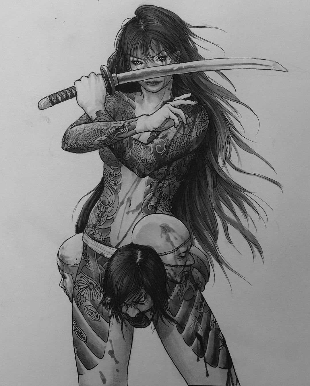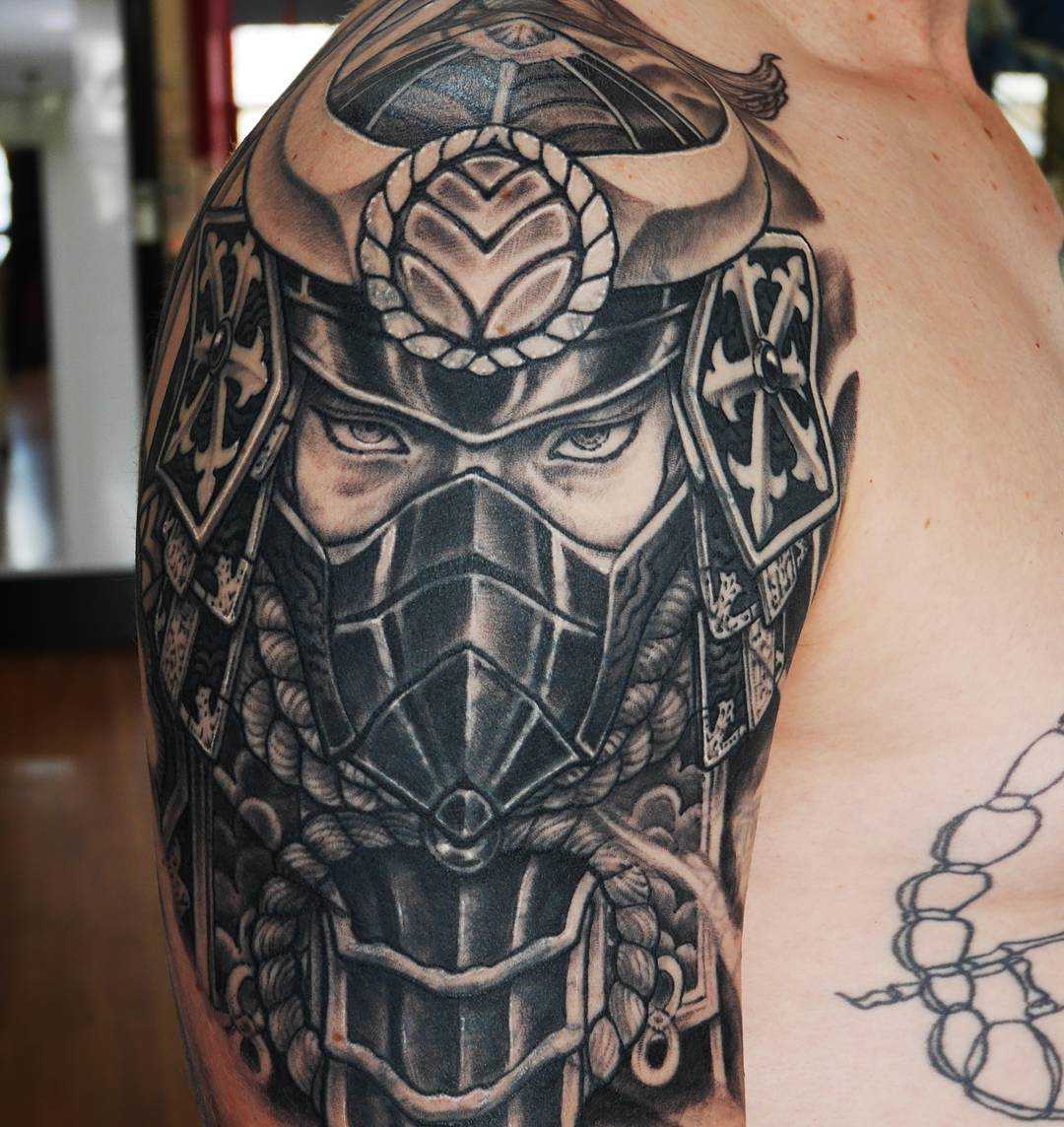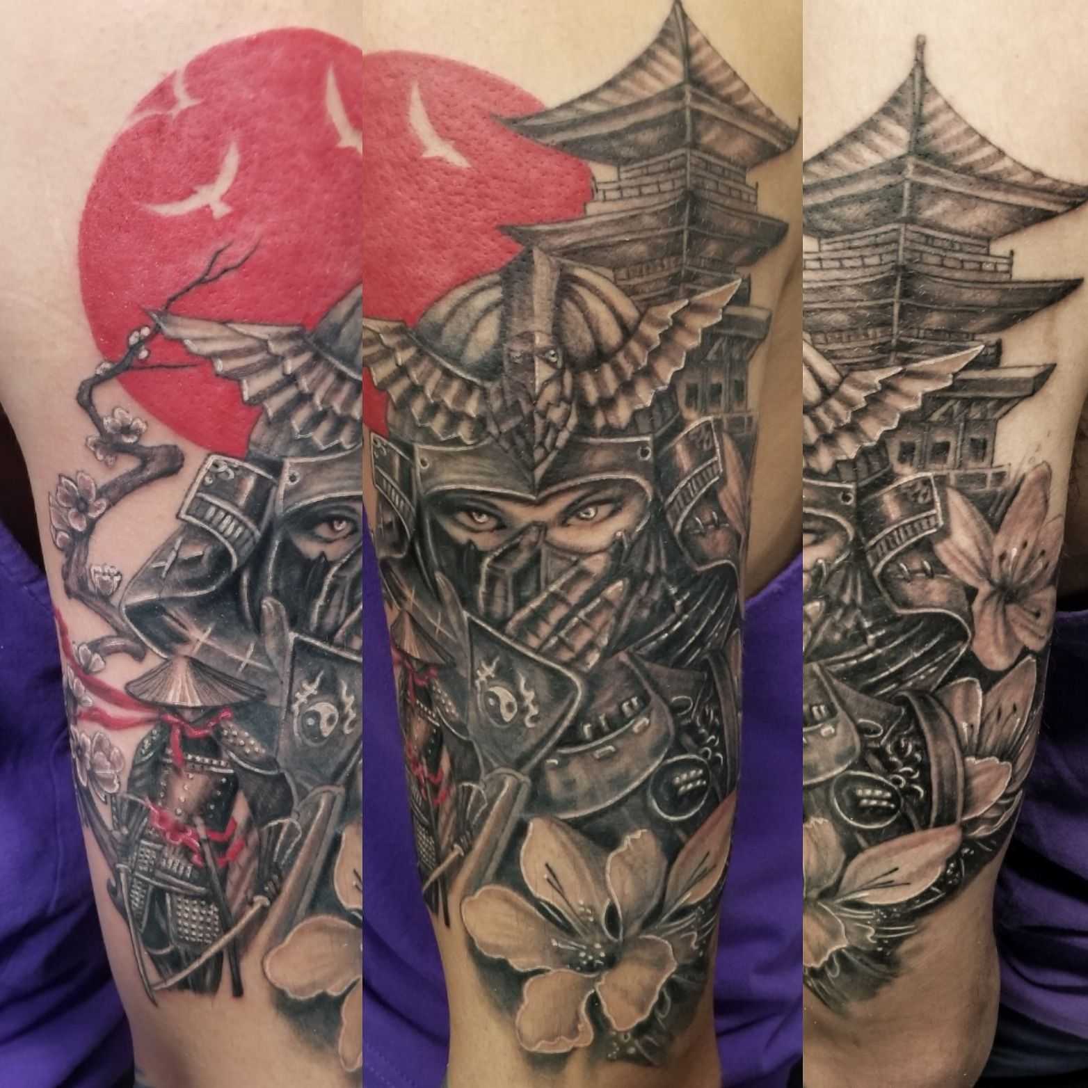 Изображение ниндзя либо самурая, подчеркивает, что владелец такой тату почитает обычаи предшествующих поколений, обладает мужеством и стойкостью, сражается за высокую нравственность, неуклонно идет своей дорогой, не отклоняясь от целей. Кроме того эта татуировка означает великодушие, избрание верного пути, верность идеалам и высшим целям. Ниндзя или самурай характеризует обладателя татуировки как человека чести, с четкими жизненными целями и приоритетами имеющие высокую мораль и твердость духа.
