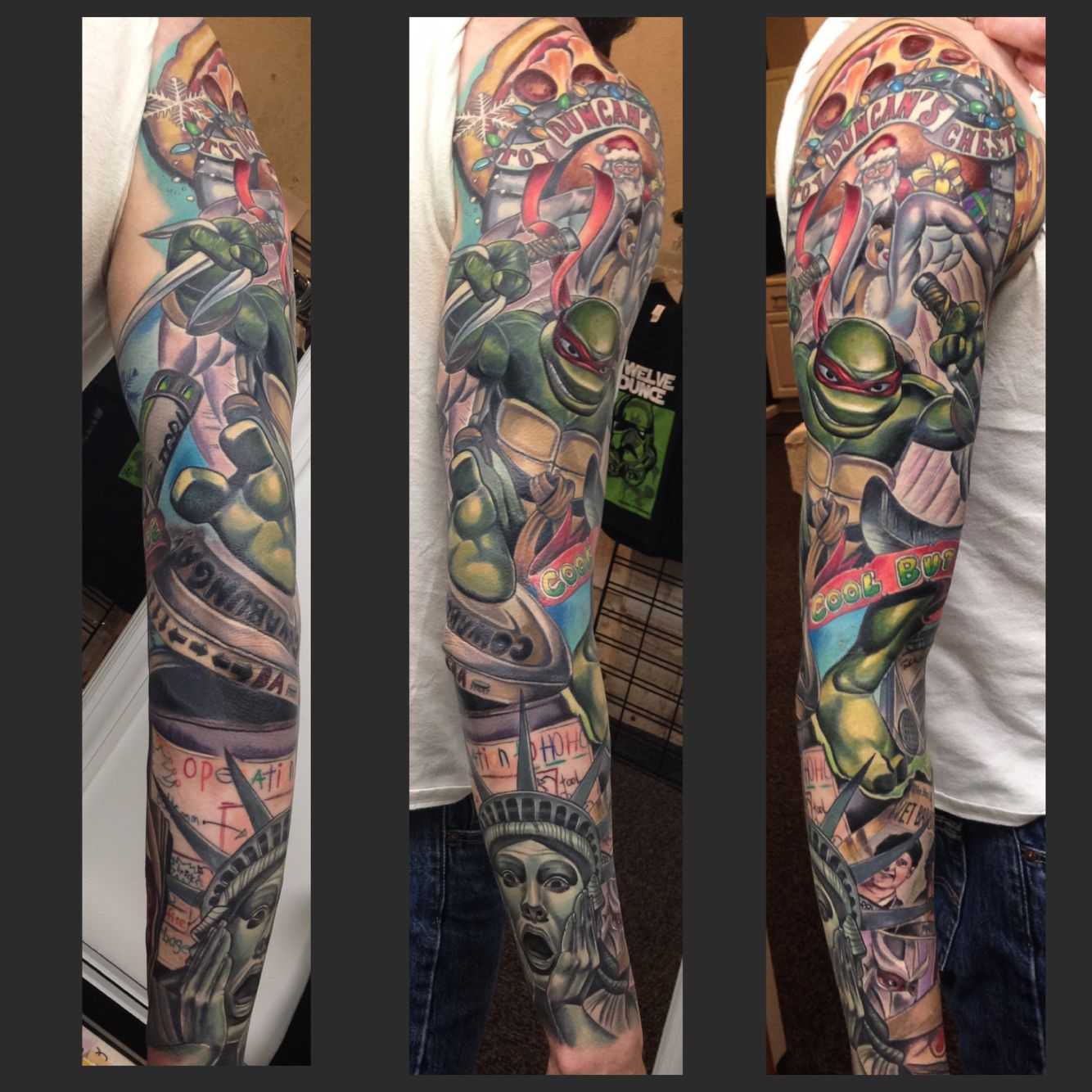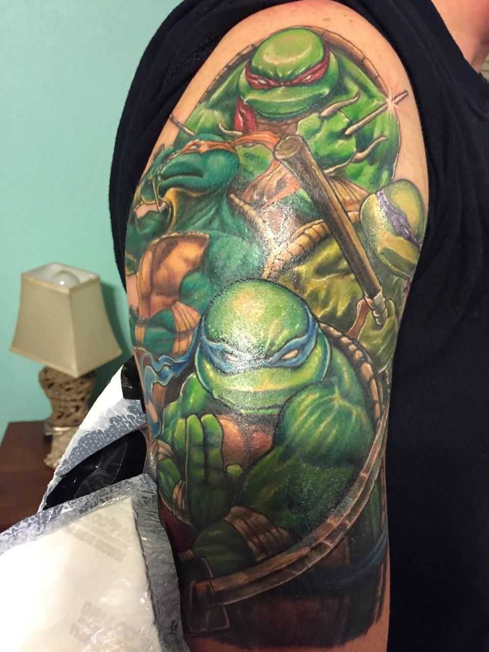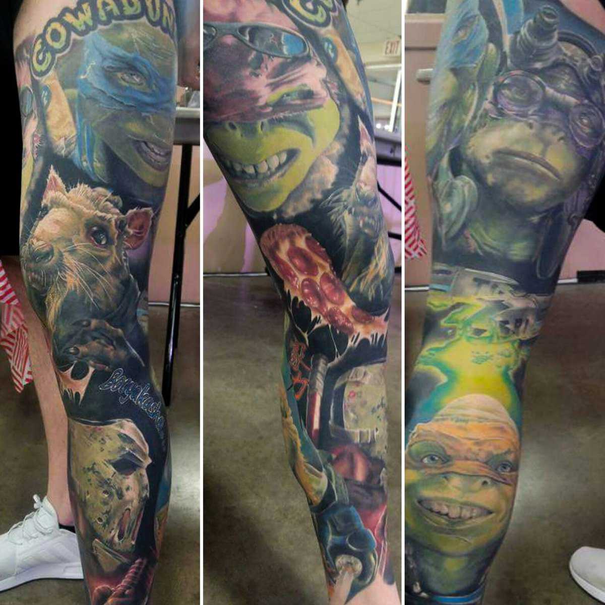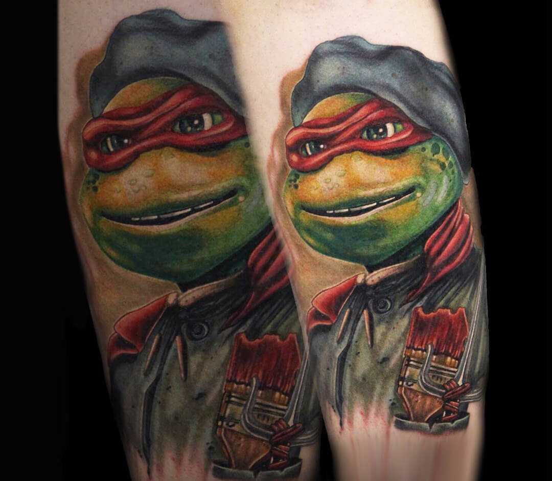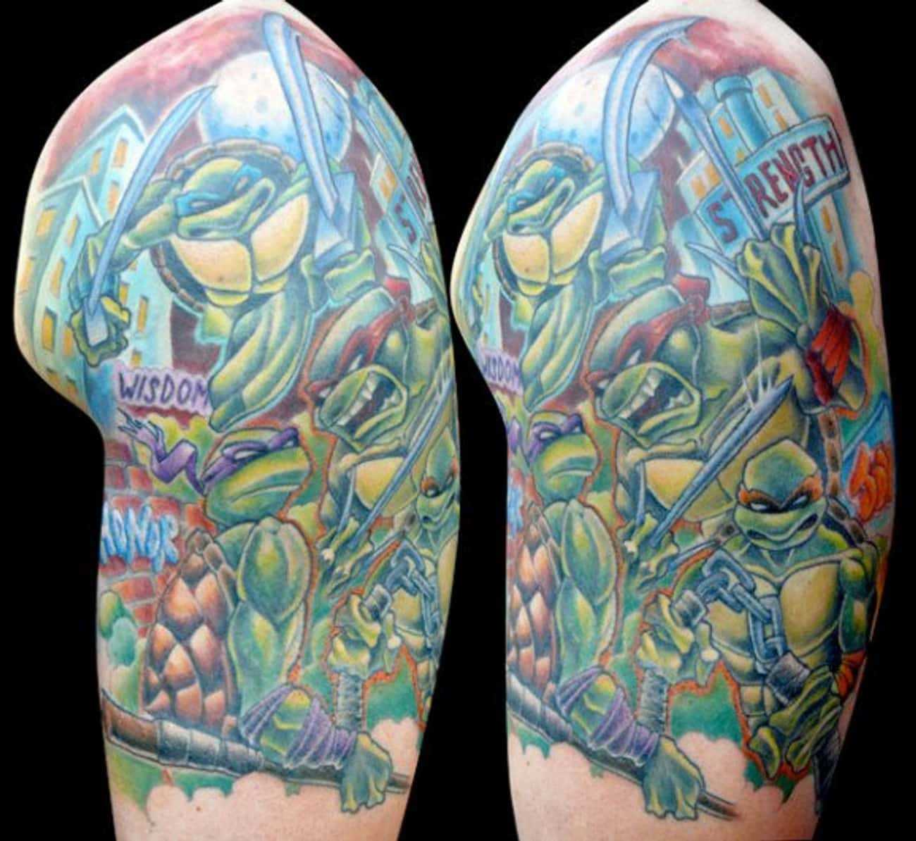 11. Crossover: Ninja Turtles are no strangers to crossover events, so why not incorporate other franchises into your tattoo? A crossover Ninja Turtle tattoo would combine the turtles with other franchises, such as Pokémon or Marvel. It’s a fun and creative way to show off your love for multiple franchises at once.