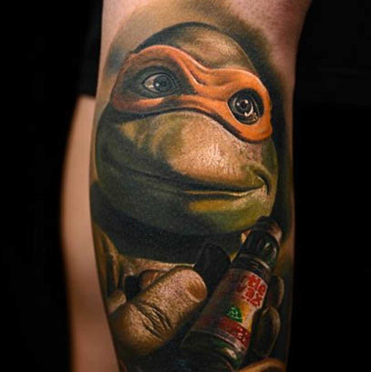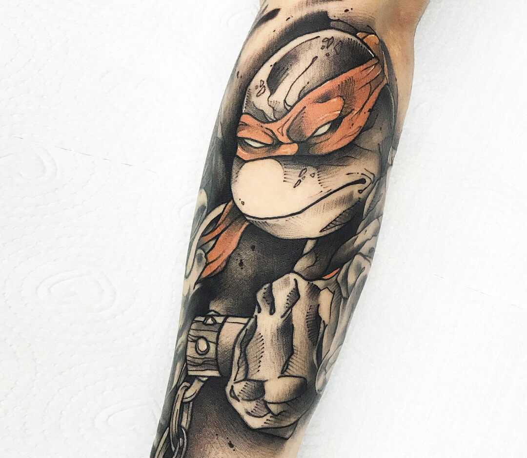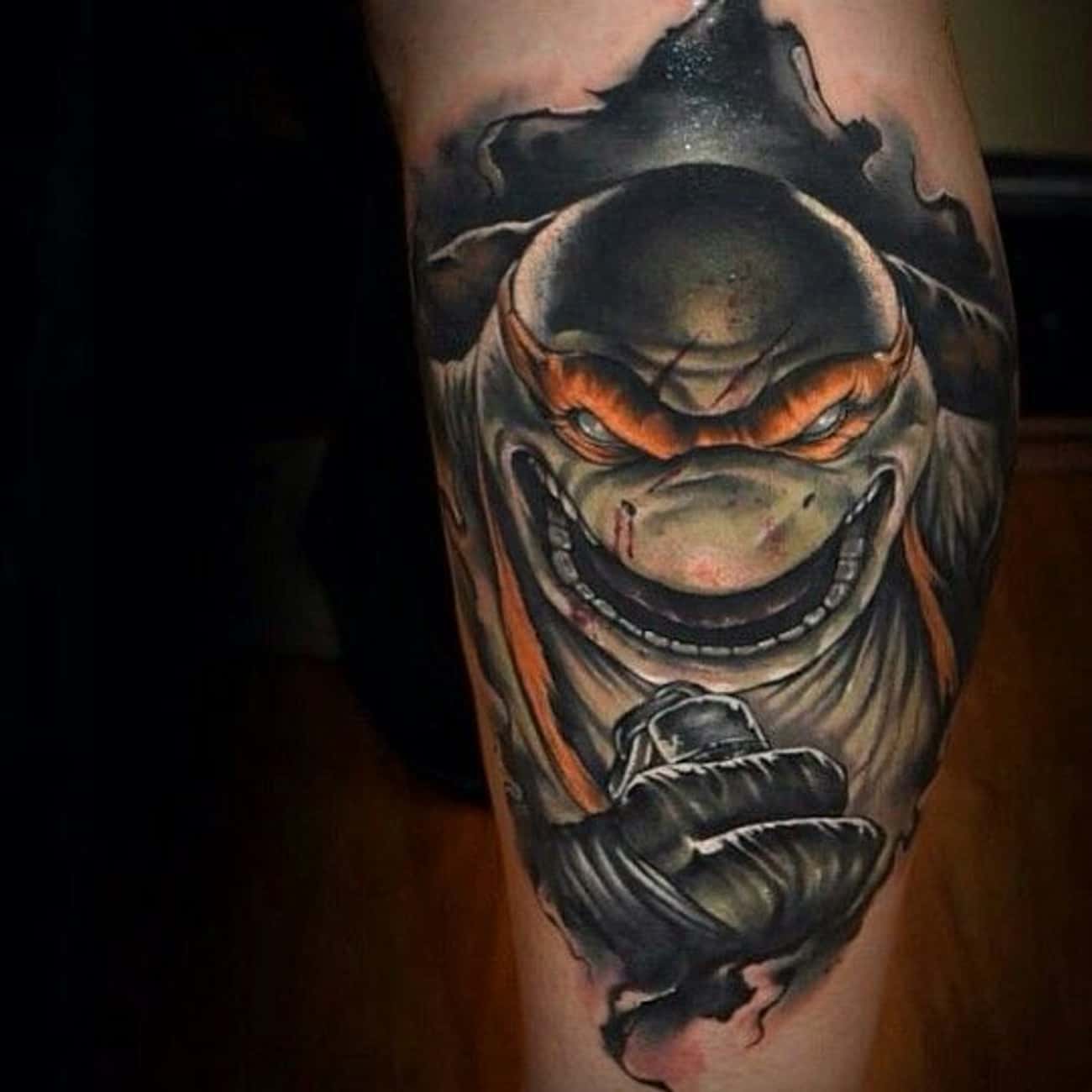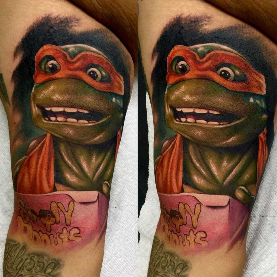2. Michelangelo Tattoo: Often referred to as “Mikey” by fans and his turtle brothers, Michelangelo symbolizes pure, unadulterated joy. His character is proof of the power of living in the moment, embracing life with both arms, and finding happiness in the little things.