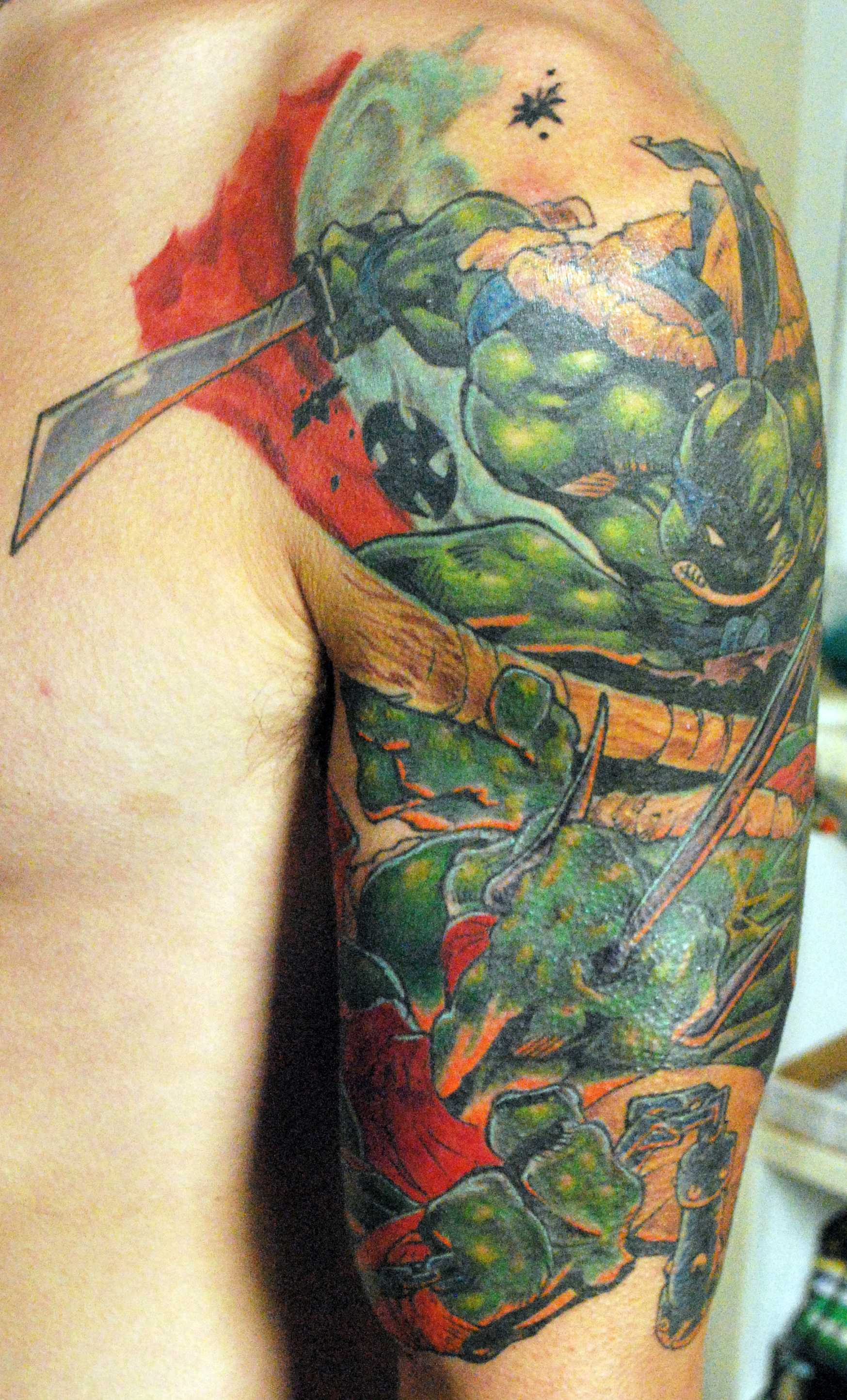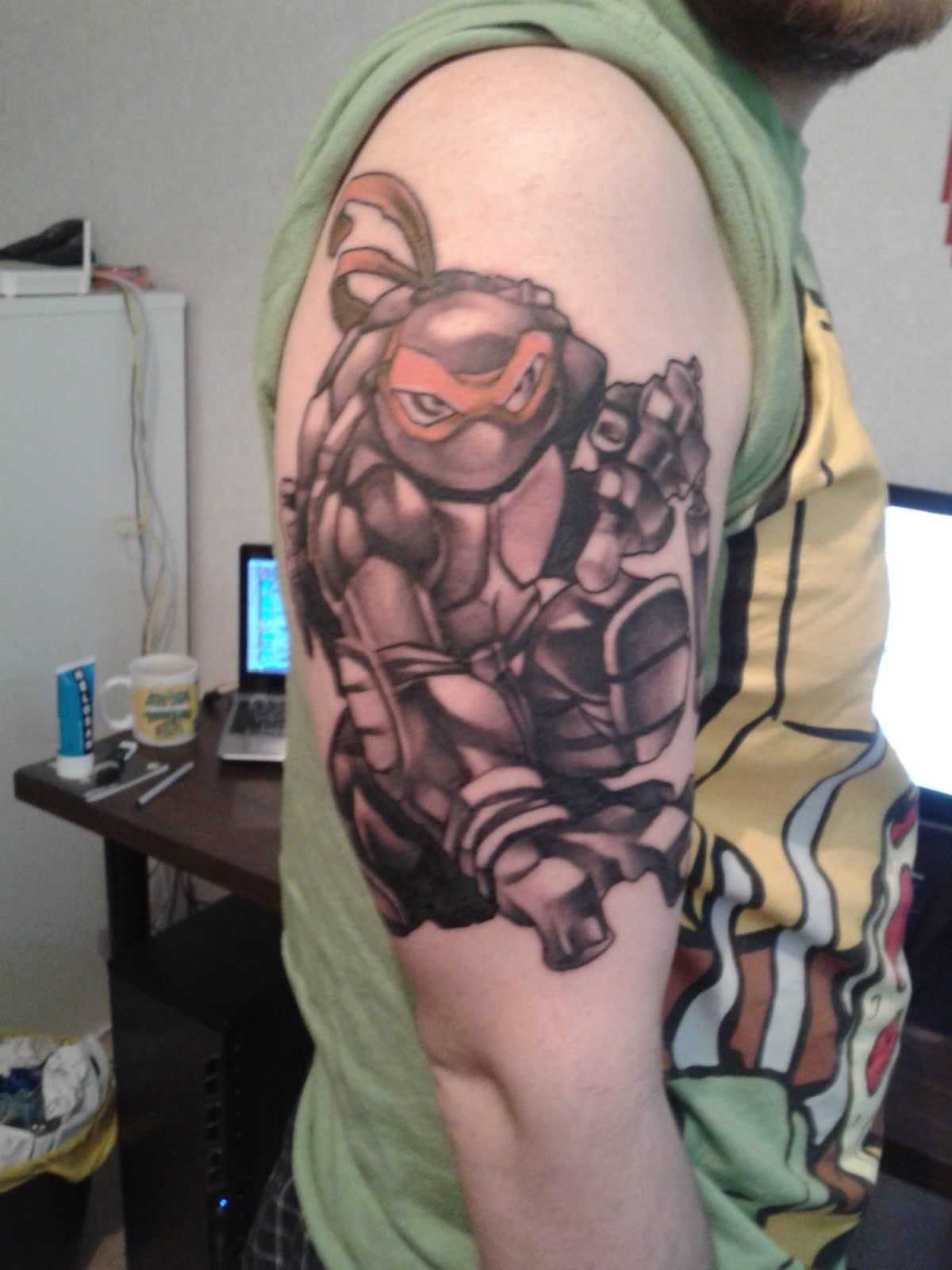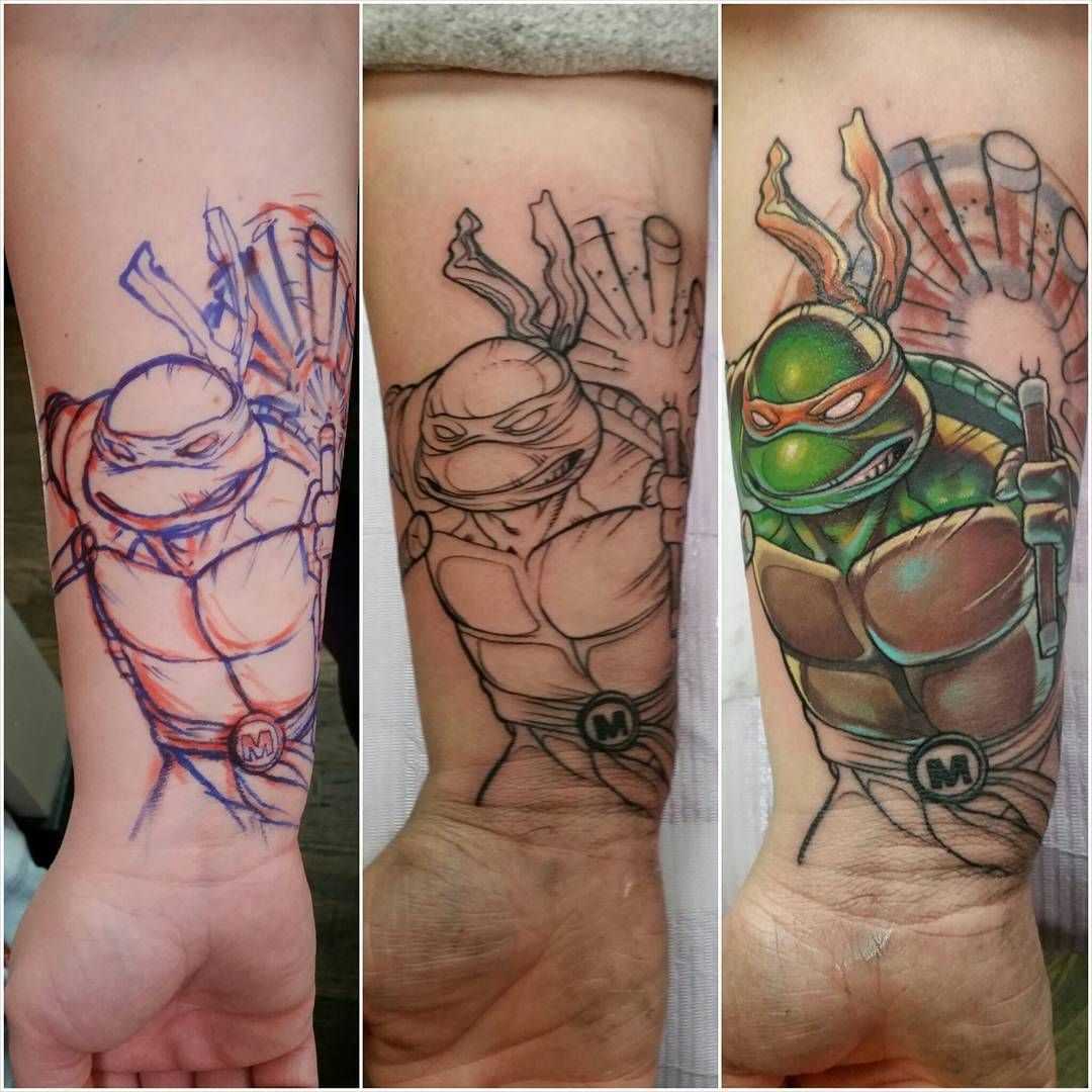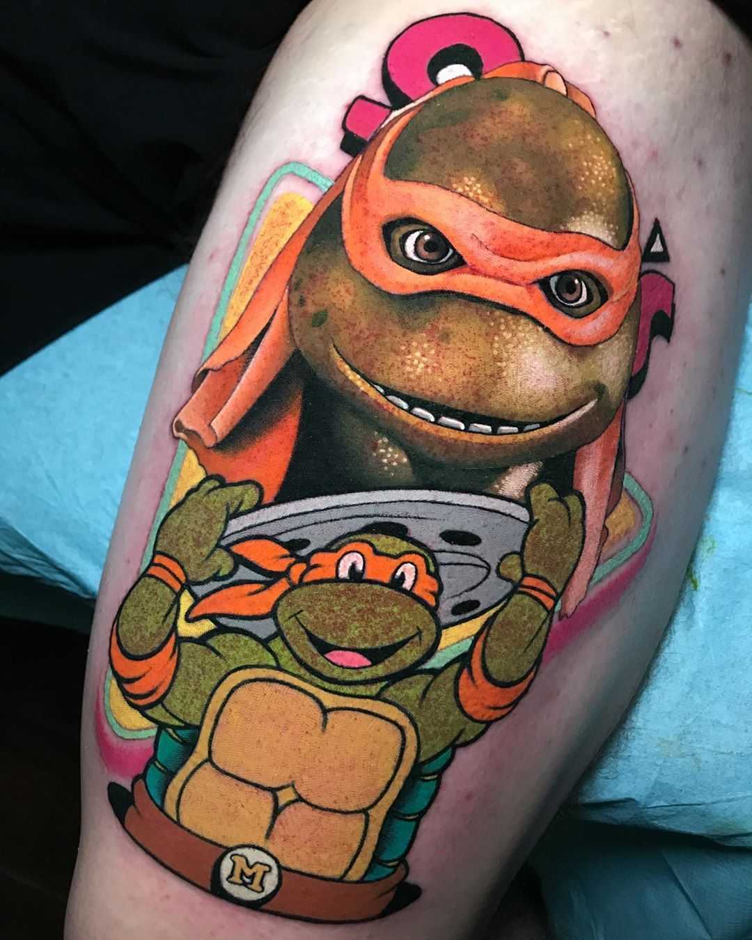 2. Michelangelo Tattoo: Often referred to as “Mikey” by fans and his turtle brothers, Michelangelo symbolizes pure, unadulterated joy. His character is proof of the power of living in the moment, embracing life with both arms, and finding happiness in the little things.
