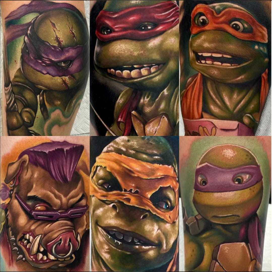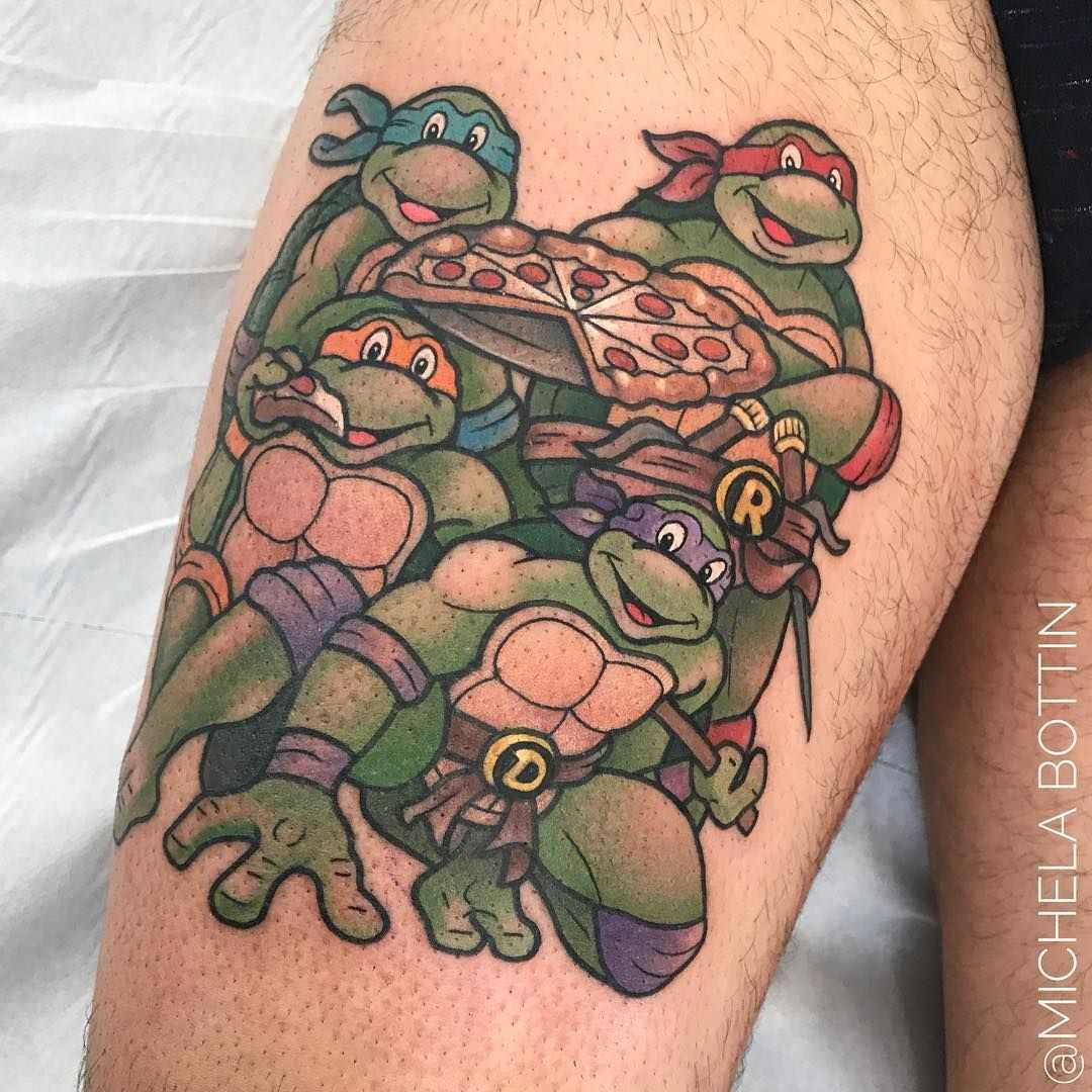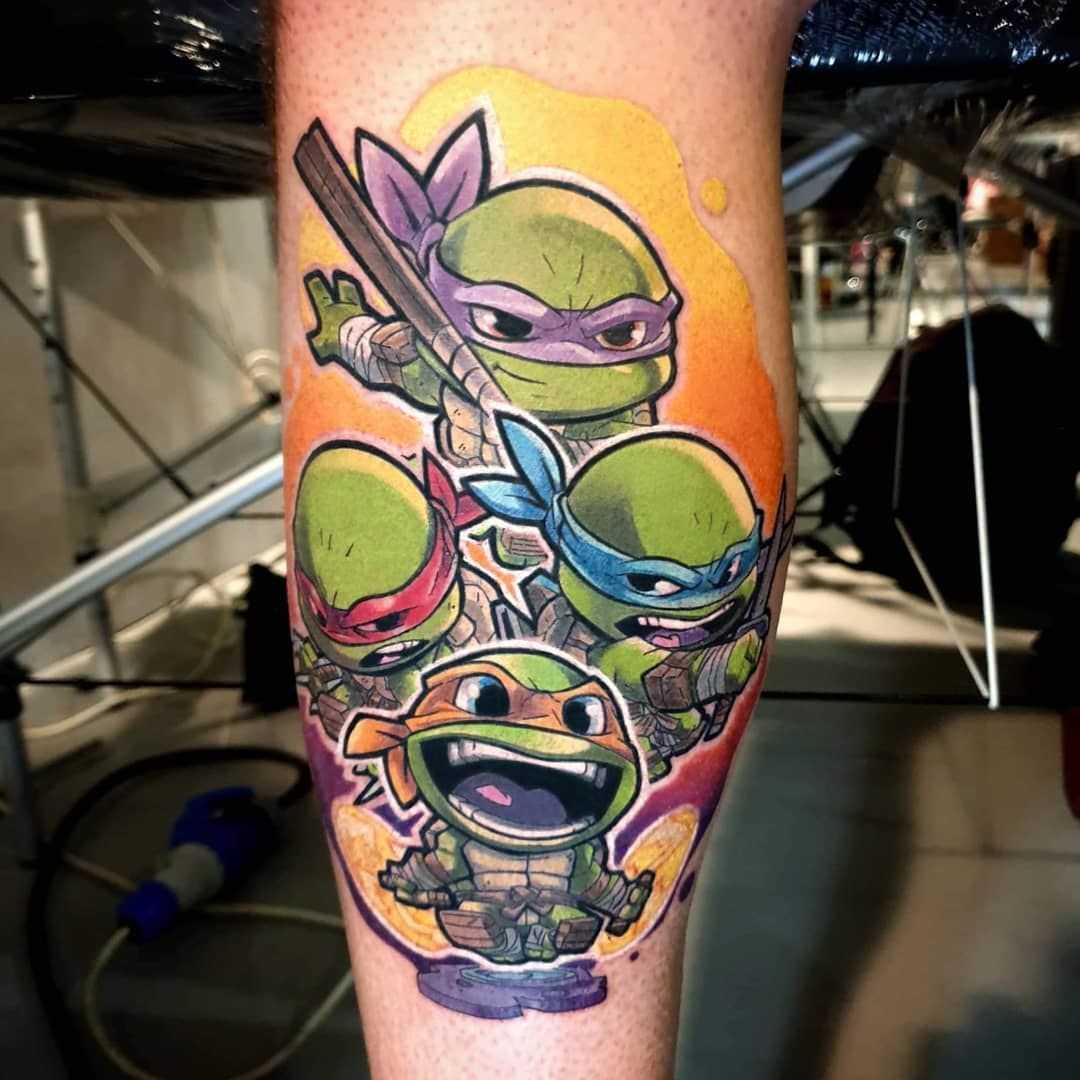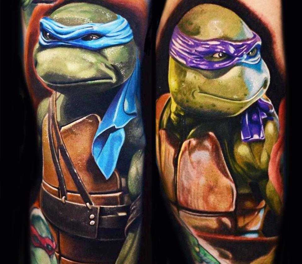 5. Leonardo, Donatello, Michelangelo, and Raphael Tattoos: Show your love for all the turtle brothers by getting separate tattoos of each one of them. Doing so creates a visually stunning picture when all four turtles are put next to each other.