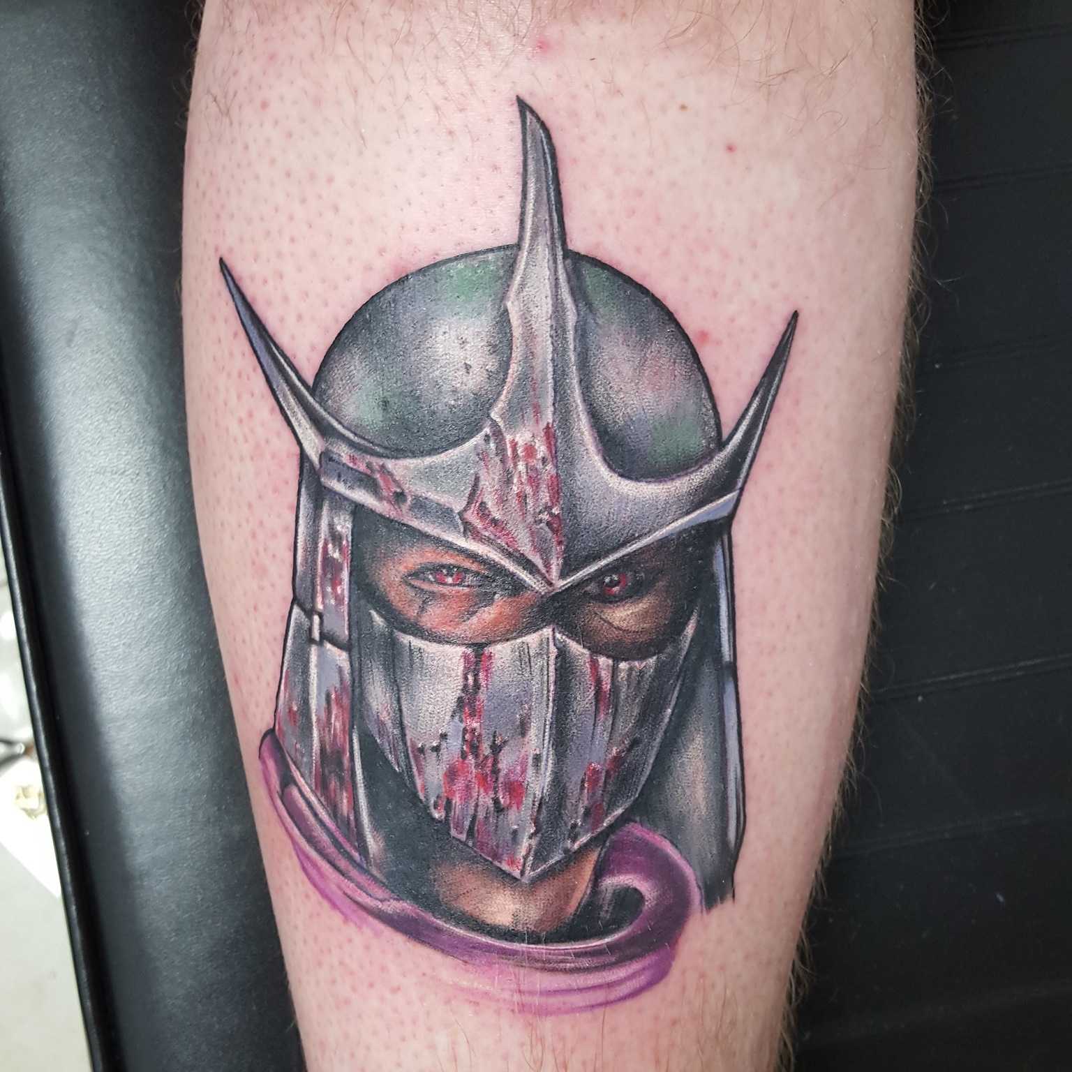12. Villain Showcase: The turtles are only as good as their villains, and showcasing them in a tattoo can be a great way to celebrate the franchise’s memorable baddies. A villain showcase Ninja Turtle tattoo would showcase the turtles’ greatest adversaries, complete with their signature weapons and poses.