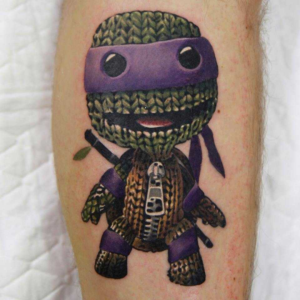 3. Donatello Tattoo: The brains behind the operations, Donatello, symbolizes intelligence, innovation, and strategy. His purple mask signifies his depth and wisdom.