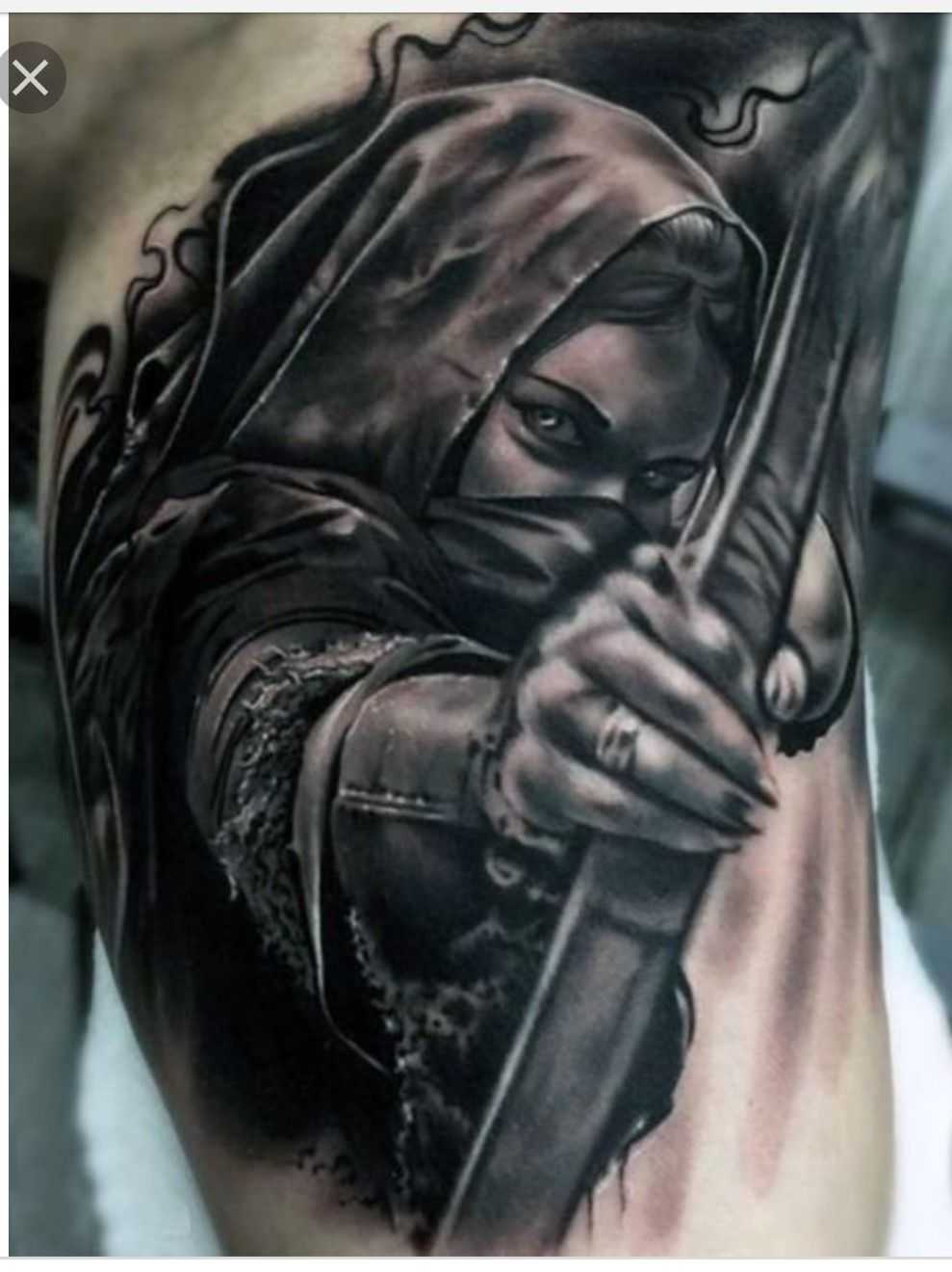 Фото примеры готовых татуировок с рисунком «ниндзя»: