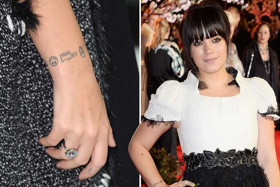 Лицо Гомера Симпсона, эйсид-хаус смайлик и собачка. Вся женская логика на одной руке Лили Аллен.