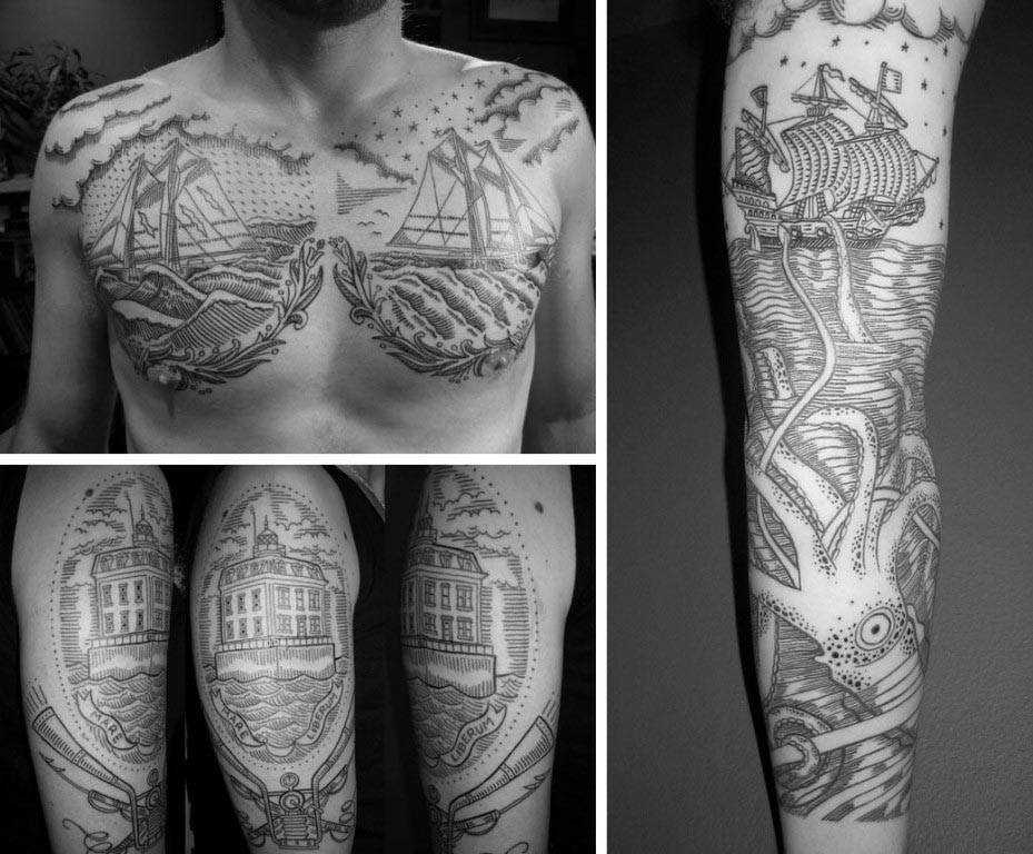 Графический дизайнер из Амстердама, владеющий собственной студией. В его работах очень много деталей, также он использует очень тонкие линии. Папанатос утверждает, что британские гравюрные татуировки не такие изысканные, как голландские.