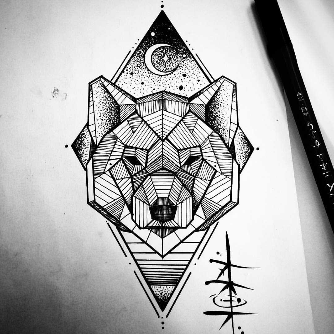 Перед тем, как найти подходящую геометрическую тату, следует изучить смысл самого изображения. Среди самых популярных татуировок сформированная из геометрических фигур морда волка. Этот хищник символизирует: