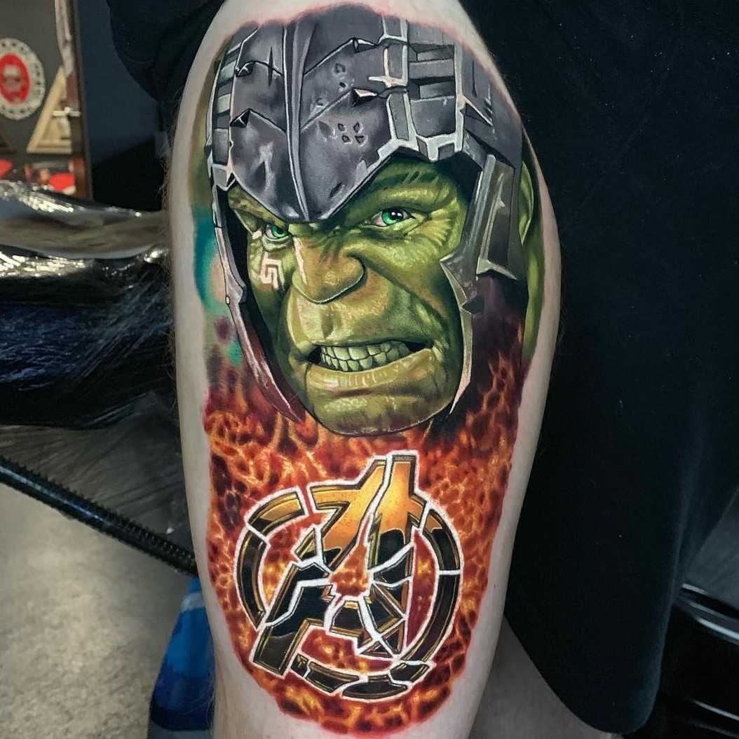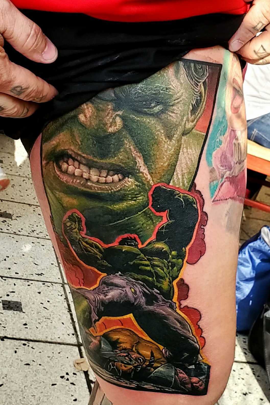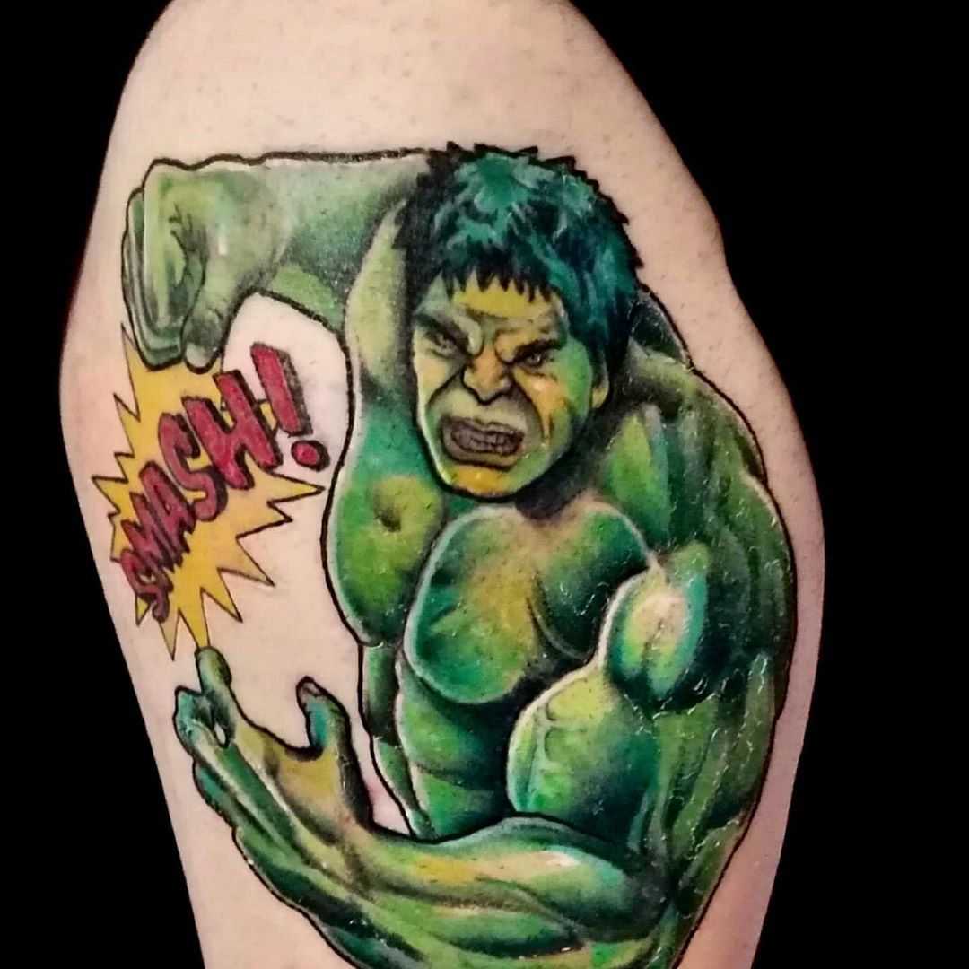 Immortalized in Ink – This tattoo is a tribute to one of the Hulk’s most iconic moments. It captures the character’s rage and power perfectly.