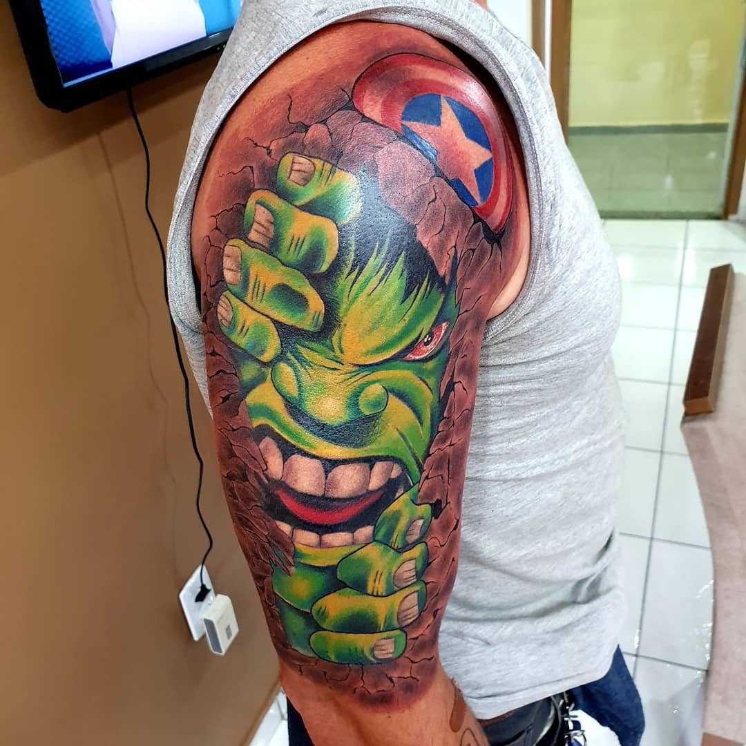 Hulk is one of the most polarizing figures in the Marvel universe. He is one of the first to have his own stand alone movie, and he is part of the core group of the Avengers. Bruce Banner, one of the smartest characters in all of Marvel obviously had a very different side of him that is represented throughout the world in all different types of forms, including tattoos.