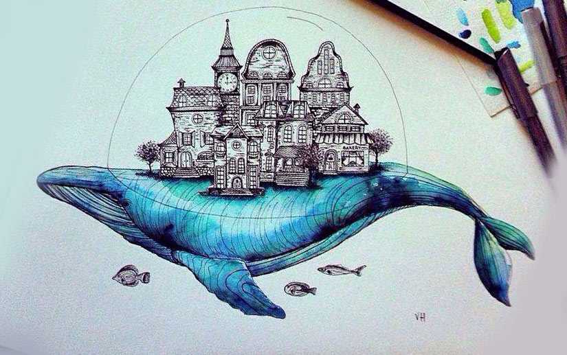 Чего только не встретишь среди возможных вариантов. Тут вам и кит с крыльями, и с иллюминаторами, как у подводной лодки. Это уже не говоря о старых добрых картинках, на которых кит держит землю.