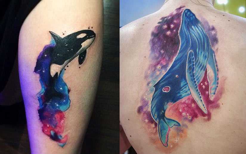 Тату синий кит, усатый кит – спокойная мощь, уверенность в собственных силах. В 2016 году такие татуировки приобрели негативный смысл. Значение тату синий кит стали трактовать как принадлежность к молодёжным суицидальным группам с одноименным названием. Возможно, такой выбор символики связан с тем, что киты иногда выбрасываются на берег и погибают.