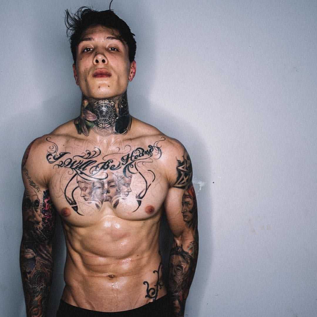 Когда он начал свою блестящую карьеру, мы увидели, что у него также была отчеканена китайская буква 氏 (ши) на правой руке – тенденция 2000-х годов, которая, к счастью, не вернулась. Когда он понял, что это слово означает «фамилия», а не «семья», – слово, которое он хотел набить, – он удалил его.