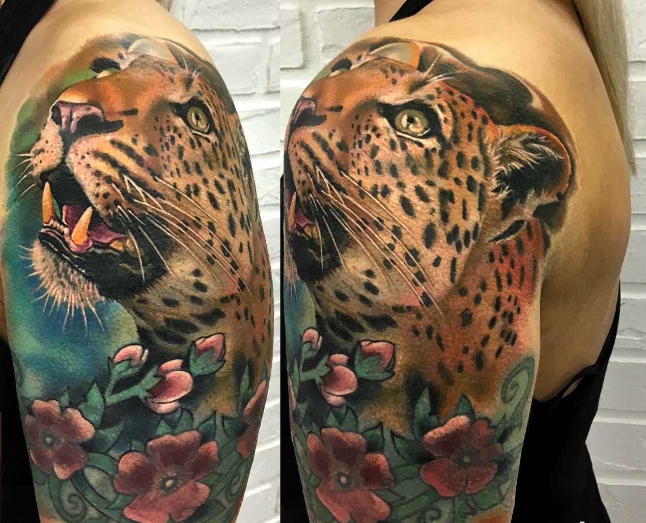 Мужчины и женщины одинаково ценят татуировку с леопардом. Известно много вариантов понимания татуировки с данным зверем на теле человека: