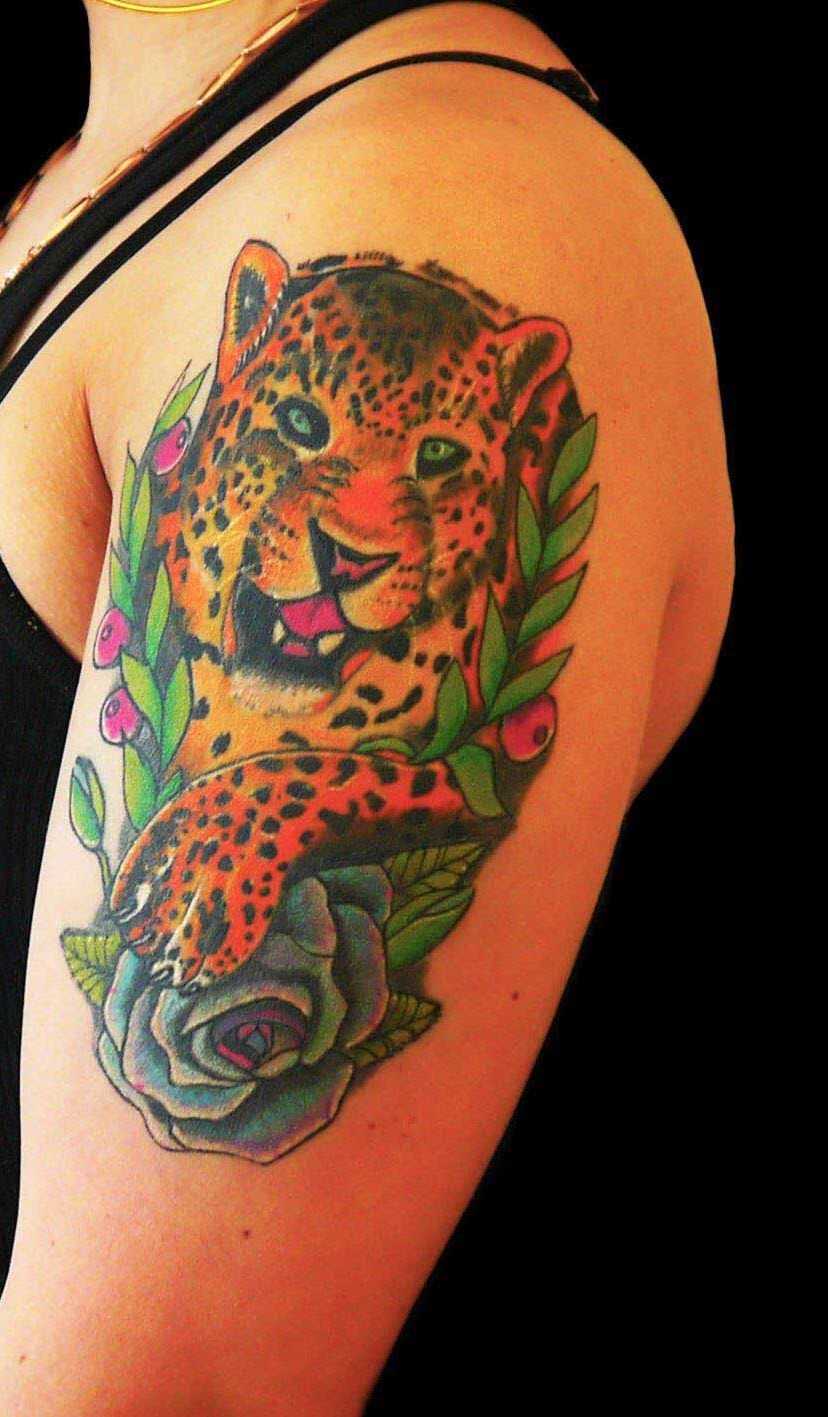 Поэтому такая татуировка способна подчеркнуть мягкость и в то же время гордость девушки; - Смелость и выносливость. Люди, выбирающие леопарда, могут справляться со всеми жизненными проблемами. Они не терпят препятствий, успешно избавляются от неприятностей