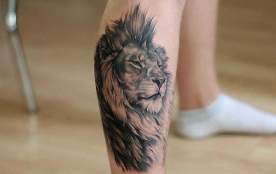 - Татуировка льва на ноге, как стойкость и сила духа.