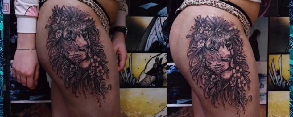 Рисунок льва на теле девушки символизирует ее верность, благородство, величие, смелость и отвагу. Однако, большее количество клиенток тату-студий выбирают именно львицу, а не льва. Также рисунок может говорит и о том, что женщина готова пойти на все ради защиты своей семьи и друзей. Утонченность, грация и нежность переплетаются вместе с агрессией, большой силой и опасностью. Как правило, перед такими девушками всегда раскрываются сердца мужчин, и они стремятся поскорее завоевать такую женщину.