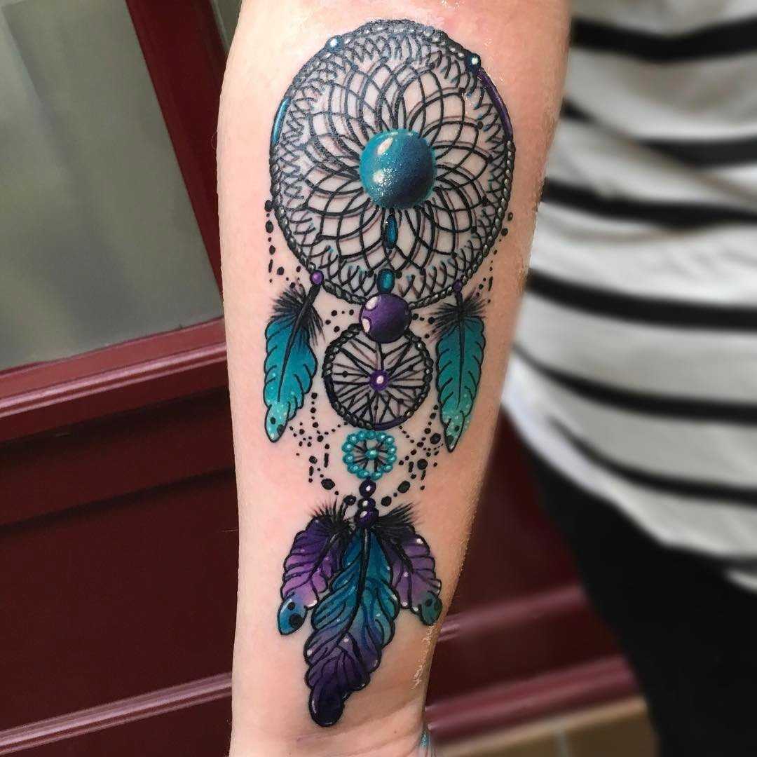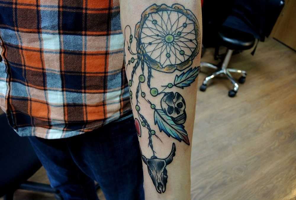 Лучшее место для татуировки — возле головы, например, на шее или плече. Ещё один хороший вариант — наколоть ловец снов на руку, на предплечье. Кроме того, рядом с символом можно изобразить изображения тотемных животных.