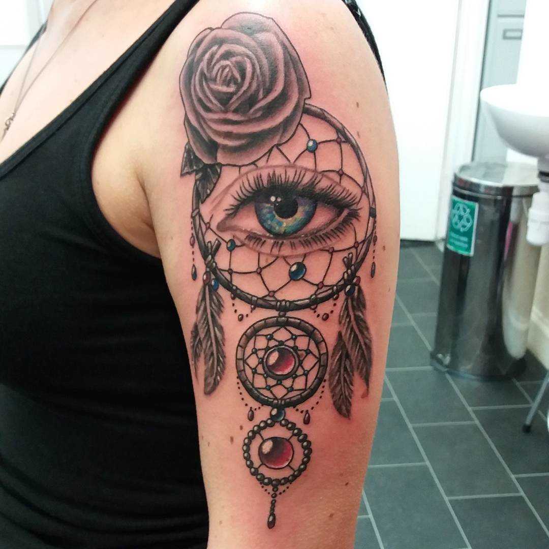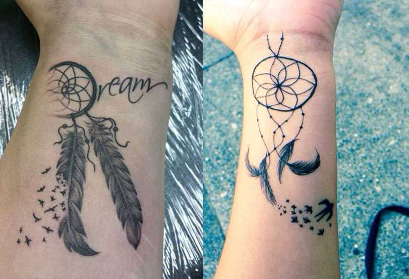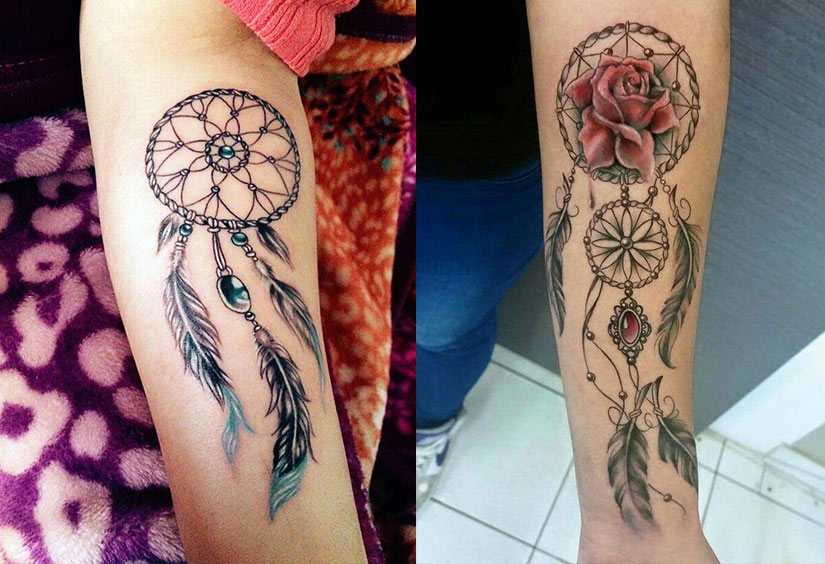 Суеверным девушкам набивают татуировку ловца снов наиболее схожего с оригиналом амулета. Обычно прячут его под одежду от дурного глаза и верят в свою неуязвимость