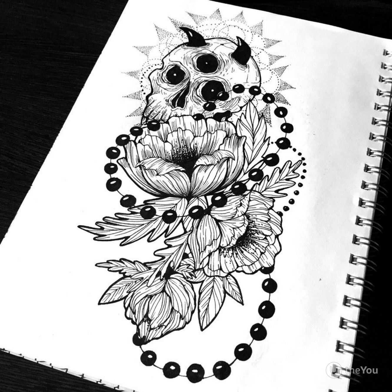 При выборе эскиза с черепом многие думают, что эти мрачные и устрашающие изображения обладают смертными признаками. Однако смысл картинки может быть совершенно иным: символизировать празднество, защиту от злых духов, нести иронию и т.д.