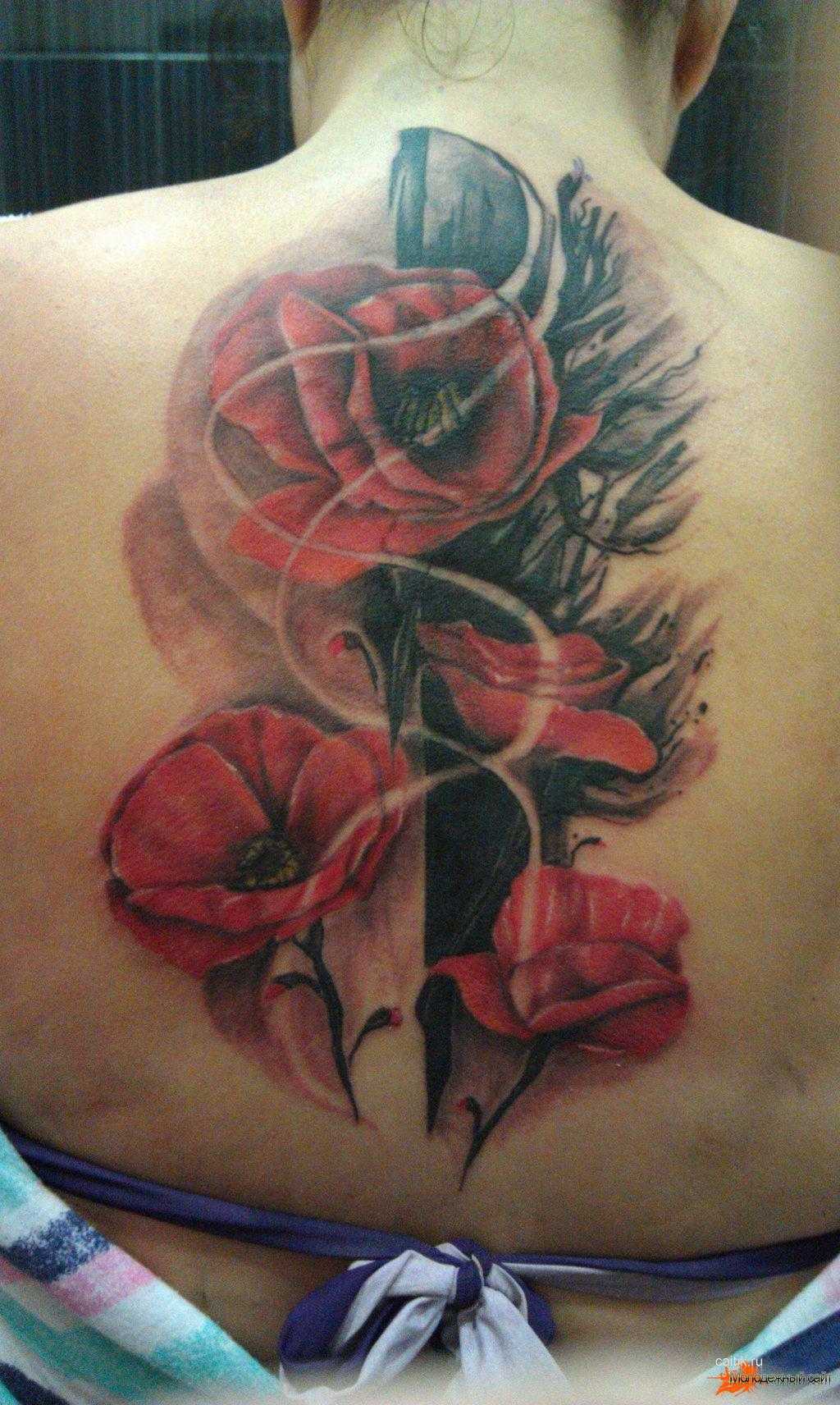 Как символ скорби и памяти уместно смотрятся тату маки на спине и груди. Хотя это значение может иметь мак на любом месте.