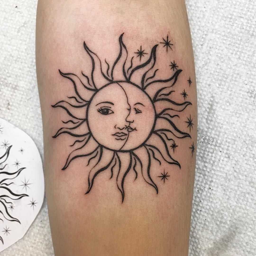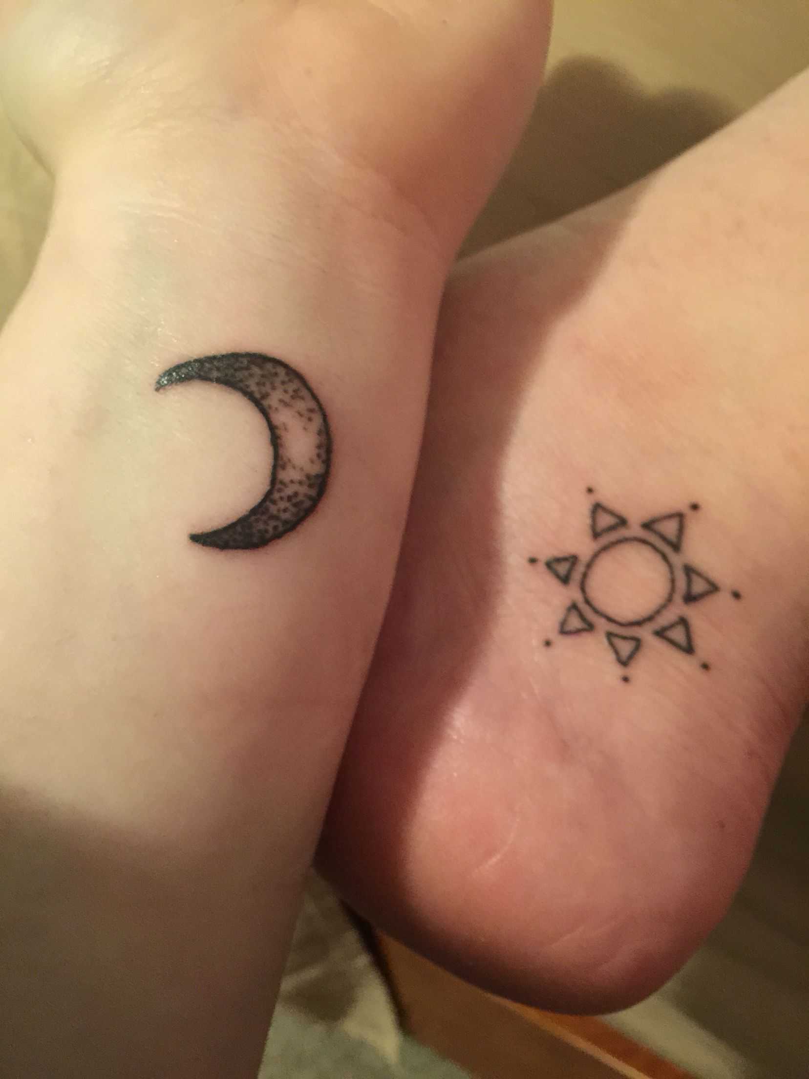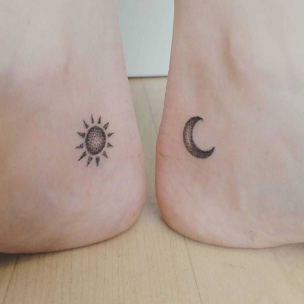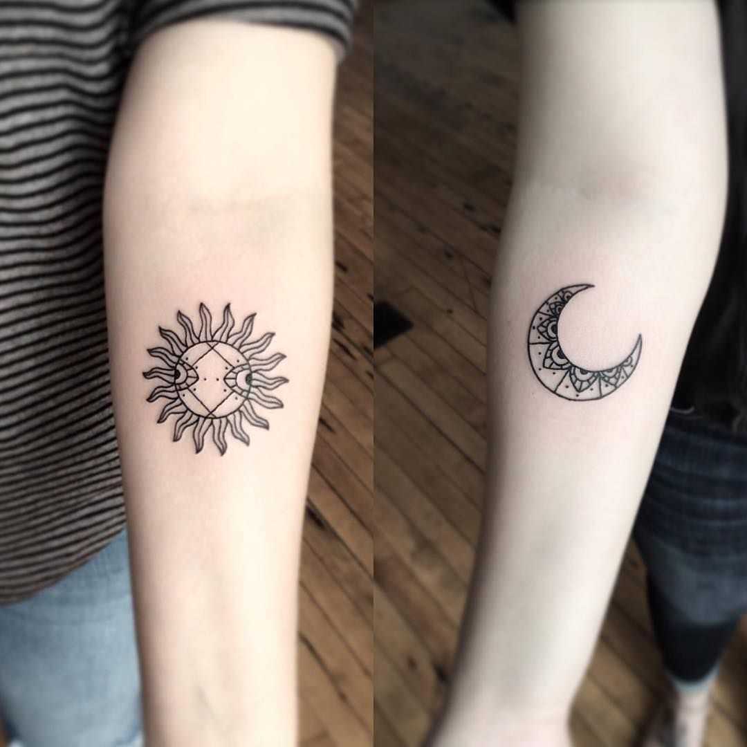 Это может быть как рисунок одного месяца или изображение сразу двух небесных светил – месяца и солнца. Интересным будет вариант нанесения таких тату на двух руках.