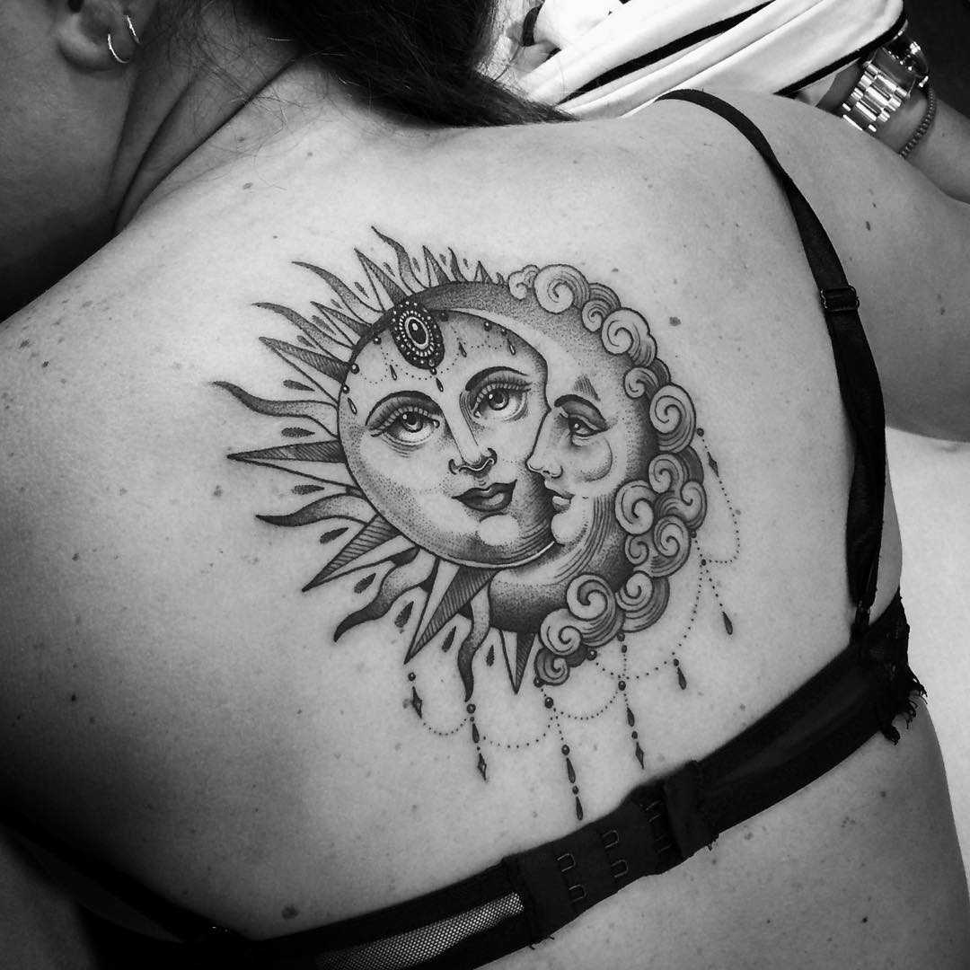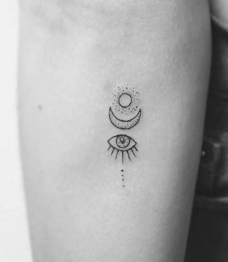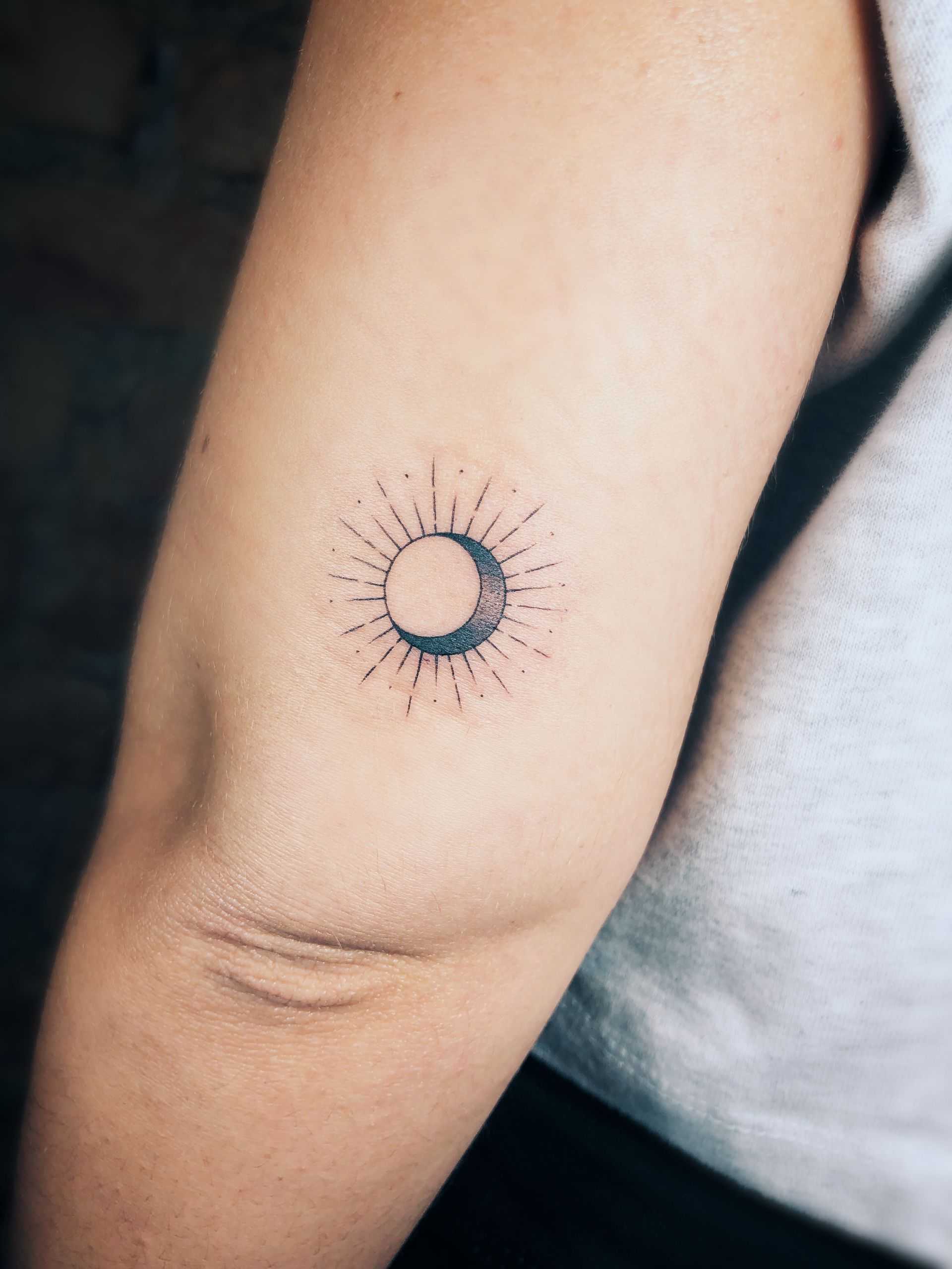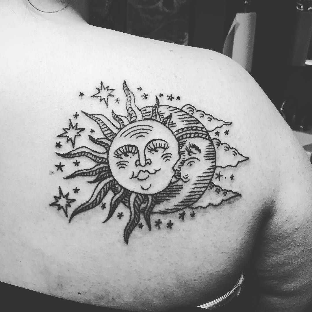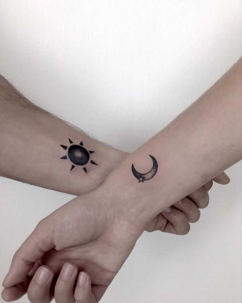 Это может быть как рисунок одного месяца или изображение сразу двух небесных светил – месяца и солнца. Интересным будет вариант нанесения таких тату на двух руках.