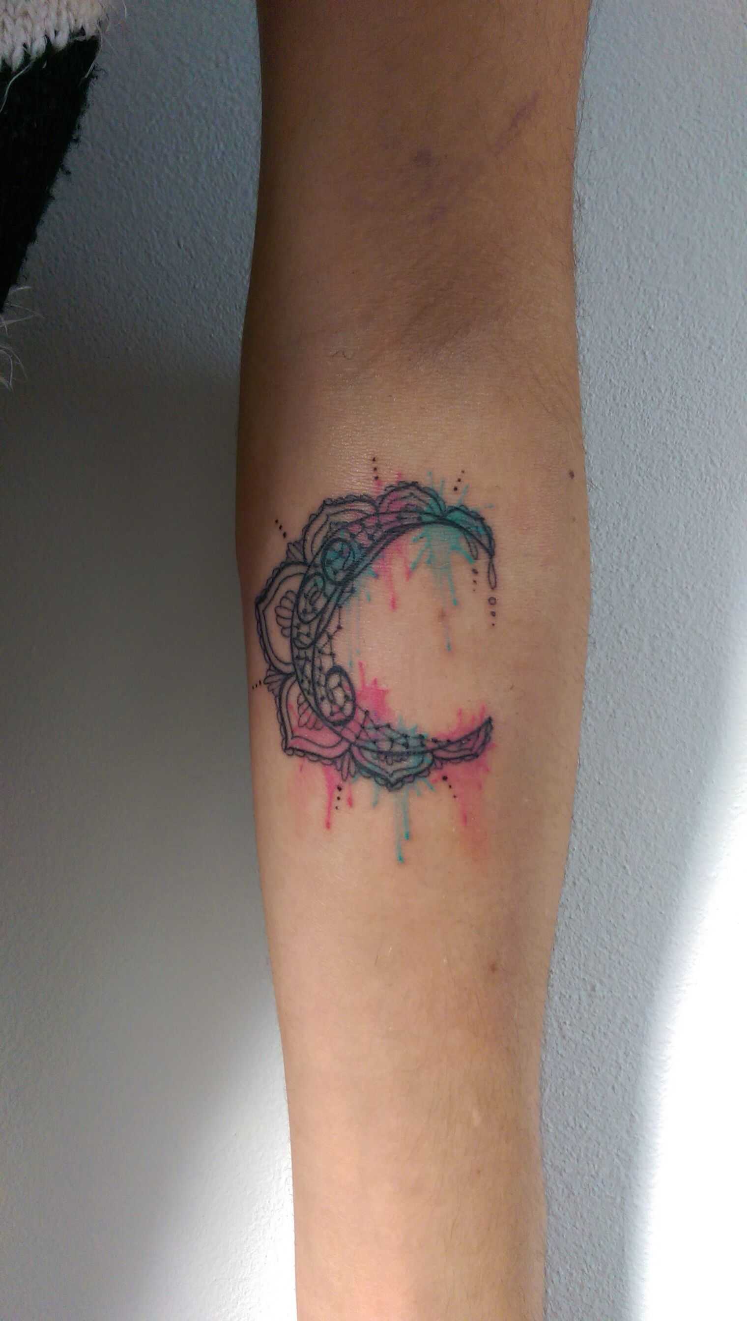 Цветовая гамма напрямую зависит от эскиза, что был выбран. В большинстве случаев месяц черный монохромный, в некоторых случаях он отображается с бледным сиянием или яркими не реалистичными оттенками. На выбранный цвет влияет наличие дополнительных элементов. Что касается стилевого решения, то зачастую луну отображают в мультипликационном, кельтском или графическом стиле.