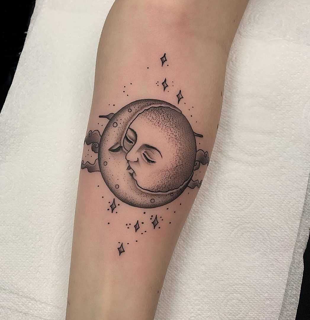 Месяц отлично вписывается в любые тату стили, будь то олд скул, трайбл, полинезия, минимализм или даже биомеханика.