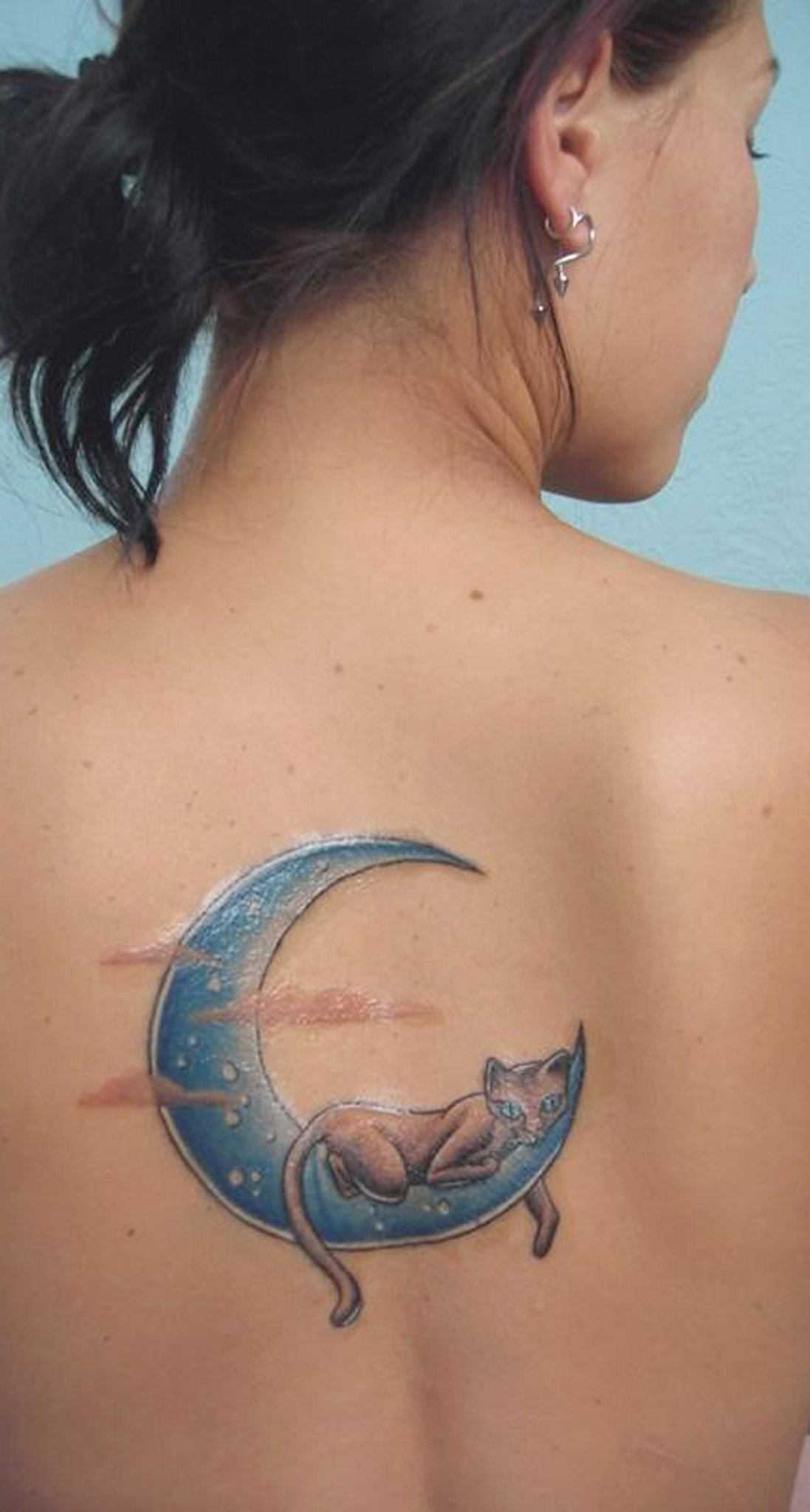 Зачастую изображение месяца на тело наносят девушки, желая подчеркнуть загадочность натуры, создать таинственный образ. Владельцы таких татуировок считают, что им сопутствует удача, успех, а в тёмное время суток их способности и чувства обостряются. В основном такие наколки делают на руках, шее, груди, спине и ногах.