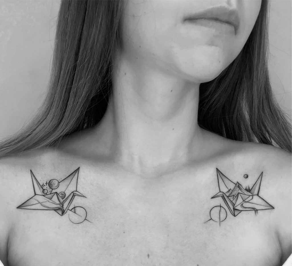 Тенденции тату на ключице для девушек на сезон 2022 года очень разнообразные – от флористических орнаментов до стильной геометрии, от рисунков «акварелью» до надписей и иероглифов. В моде абстракция, оригами, мехенди для ярких девушек, а также контурные рисунки для более скромных представительниц прекрасного пола.
