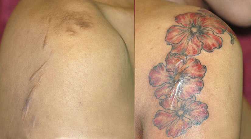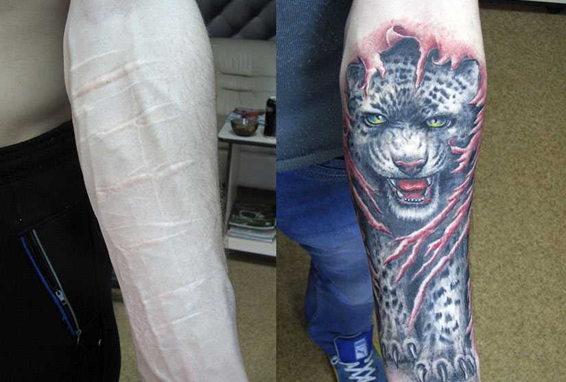 Перекрытие шрамов разной сложности татуировками