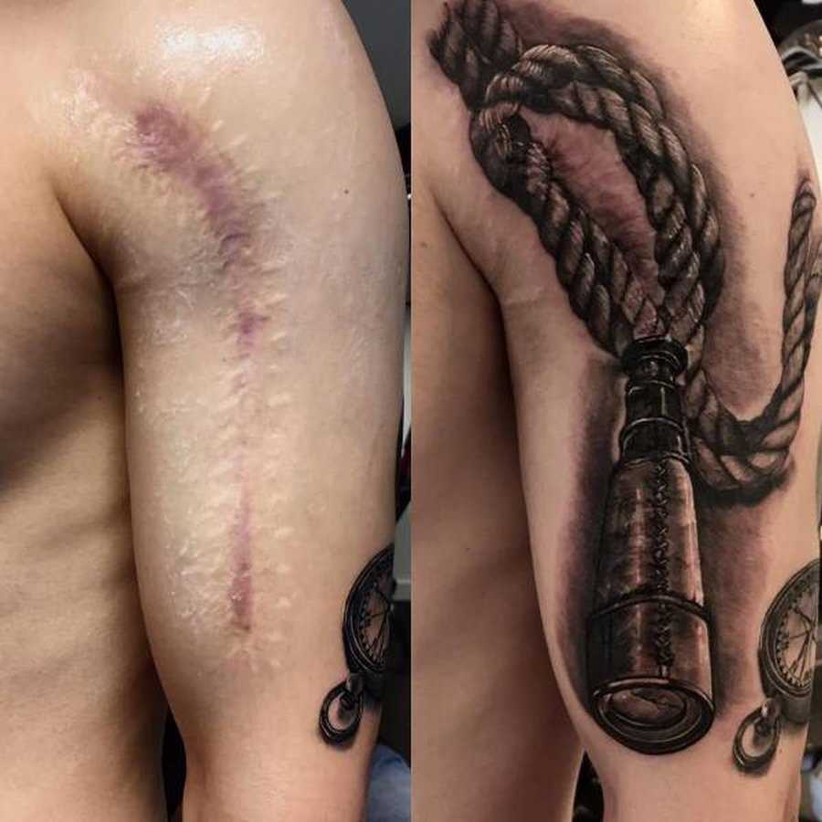 Тату на шраме, рубце, следе от ожога — варианты рисунков на фото