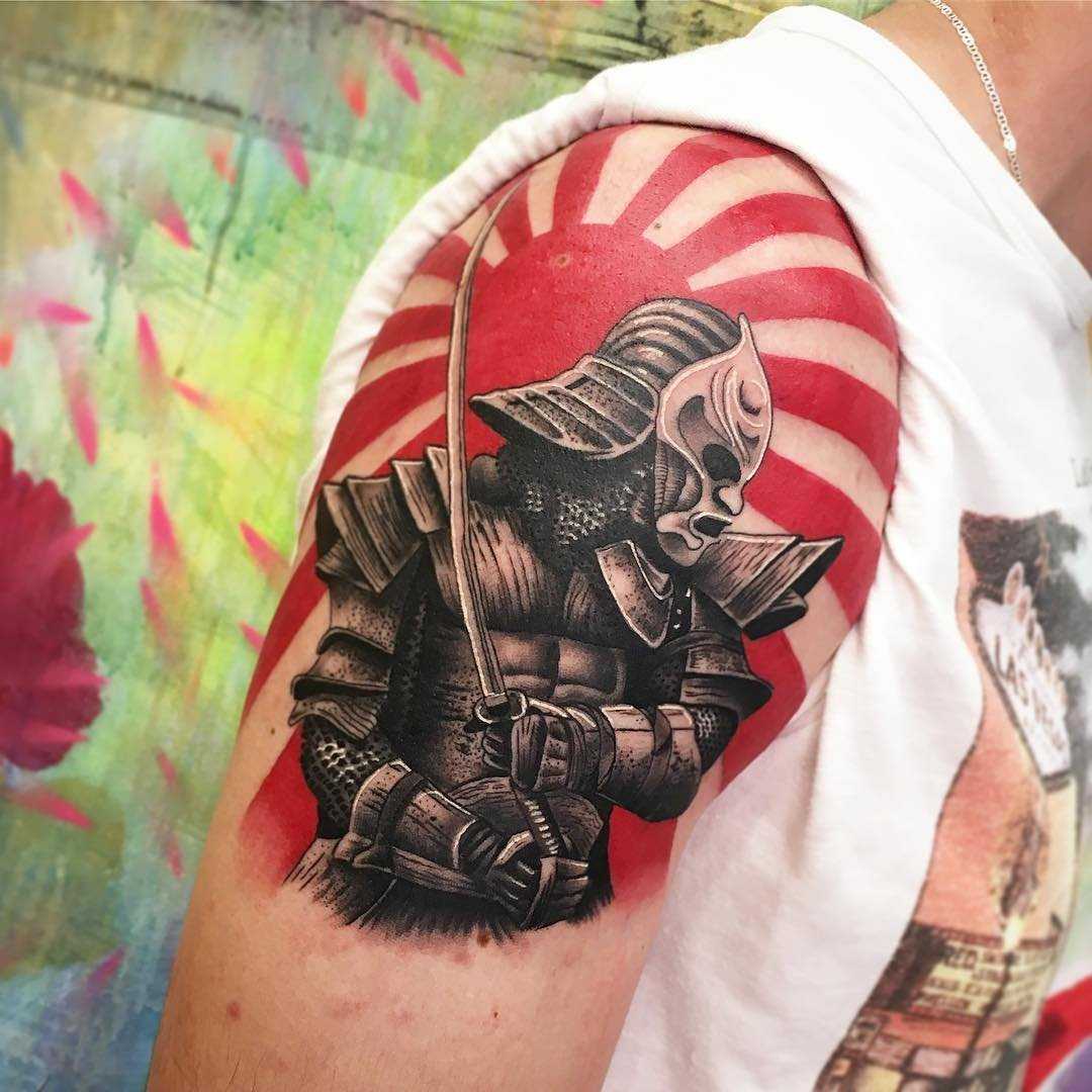 Великолепной темой для подобной идеи тату, становится Георгий Победоносец, или один из многочисленных русских богатырей, с увесистым мечем в руках, демонстрирующий силу и непреклонность «Русского Духа».
