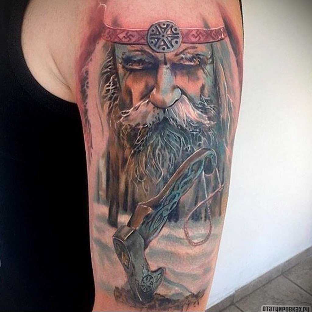 Славяне любили изображать на теле Богов, в которых веровали. Это символизировало силу и могущество, а так же этим люди выказывали свою любовь к высшим божествам. Ниже представлены примеры тату с изображением славянских Богов.