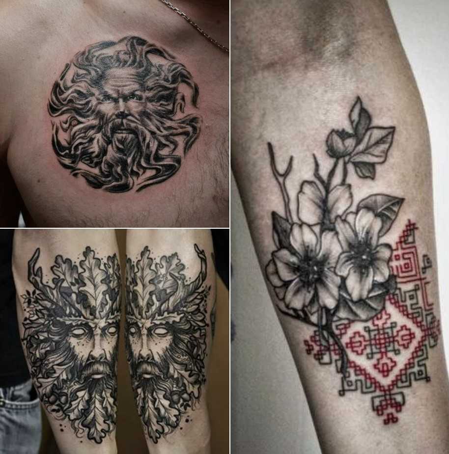 Среди татуировок древних славян преобладали различные языческие символы, изображения животных и деревьев. Однако последние встречались наиболее часто, и связано это с тем, что деревья символизировали и время, и пространство, и им активно поклонялись.