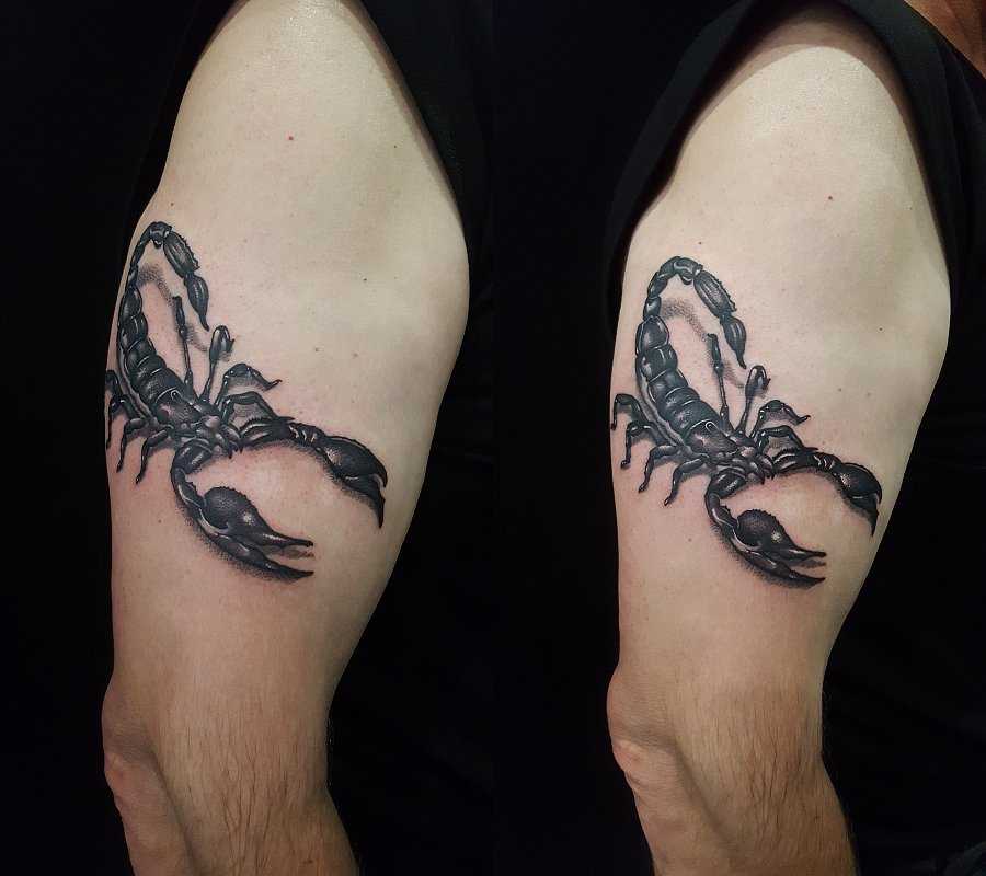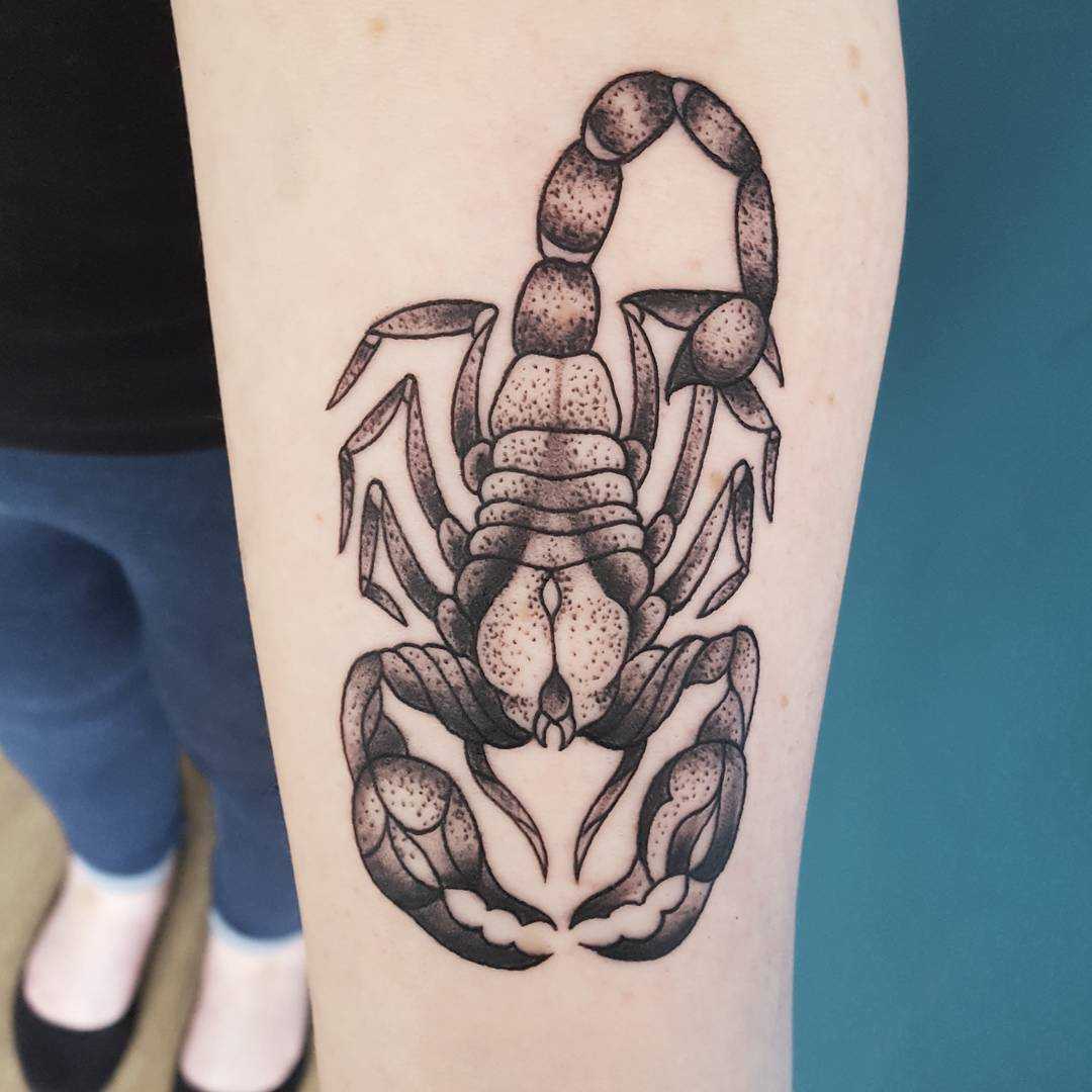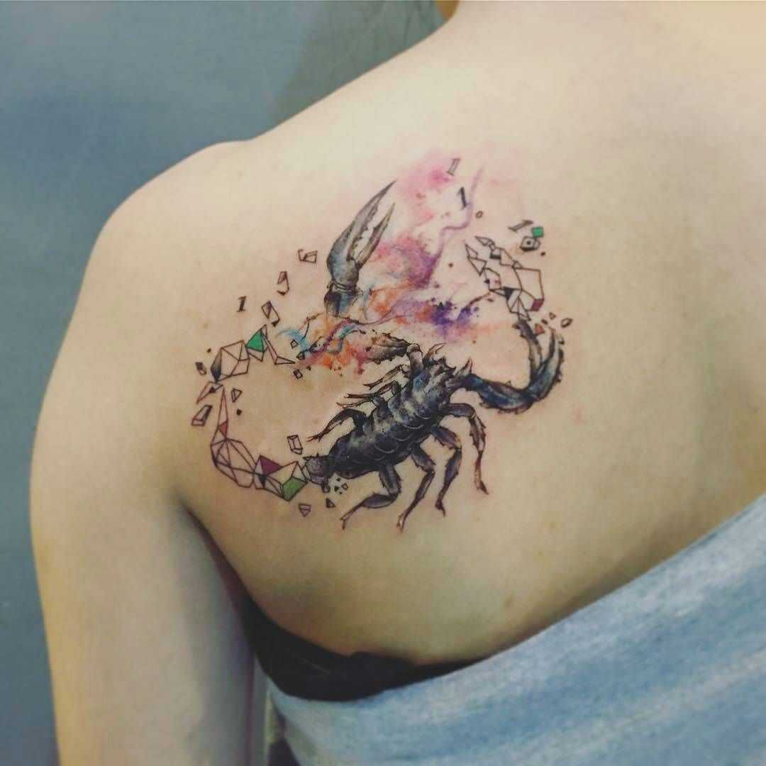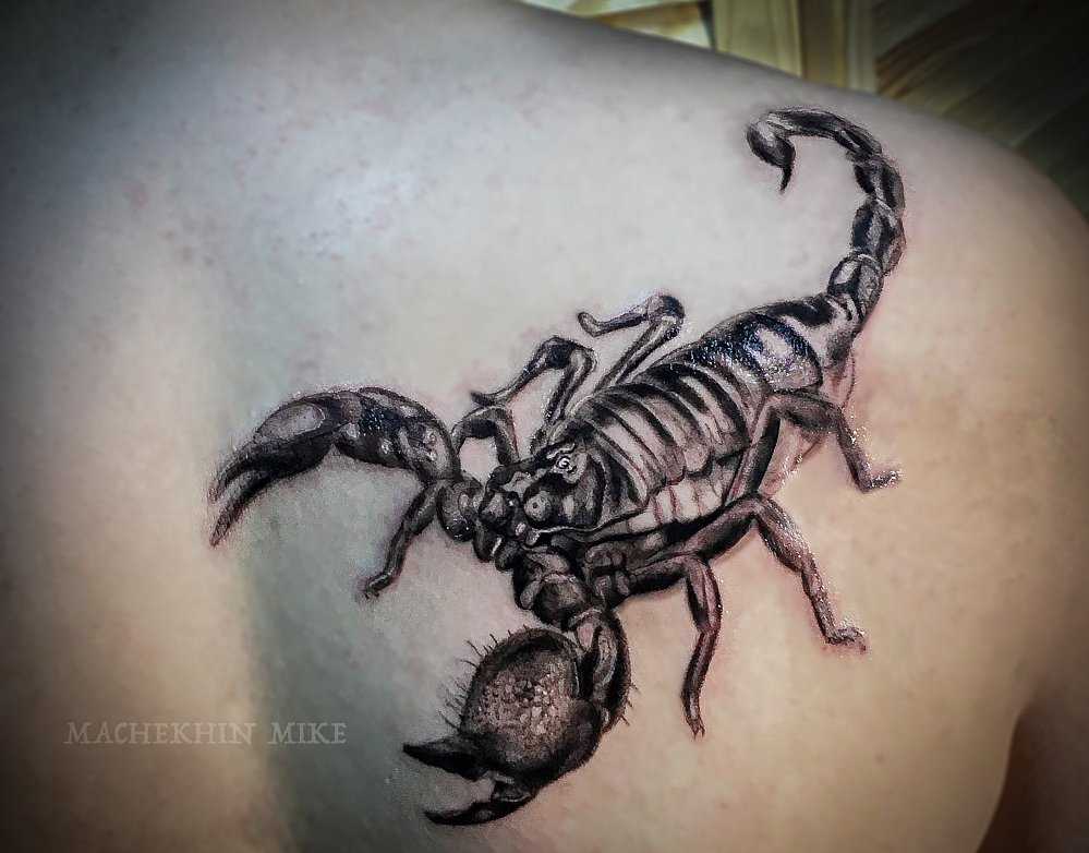 Любые вариации Скорпиона смотрятся очень красиво. Уникальное анатомическое строение туловища этого создания притягивает взгляды, а его зодиакальные качества позволяют оформлять на теле самые разные идеи. В большинстве вариантов эскизы выполняются в чёрно-белых оттенках, но яркие и красочные татуировки также не редкость. Очень популярны изображения созвездия, дополняющиеся по желанию планетами спутниками или разные вариации символа, который выглядит как изогнутая буква «m» со стрелкой. Также подчеркнуть свою принадлежность к этому знаку зодиака можно при помощи латинской надписи «Scorpio»