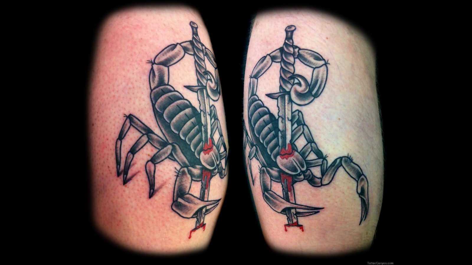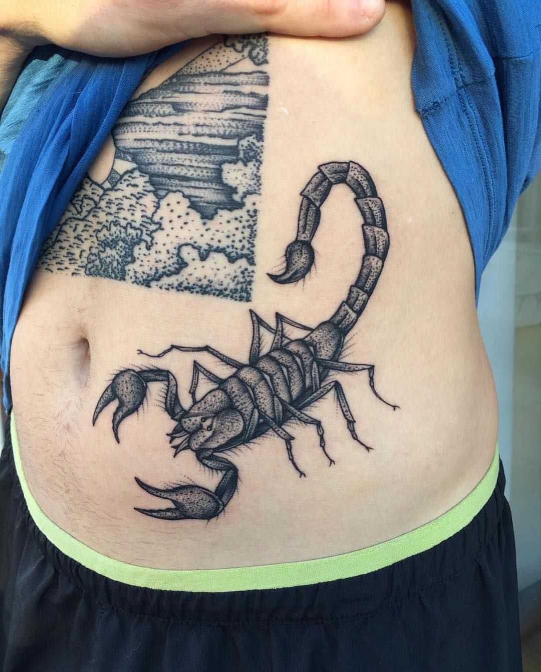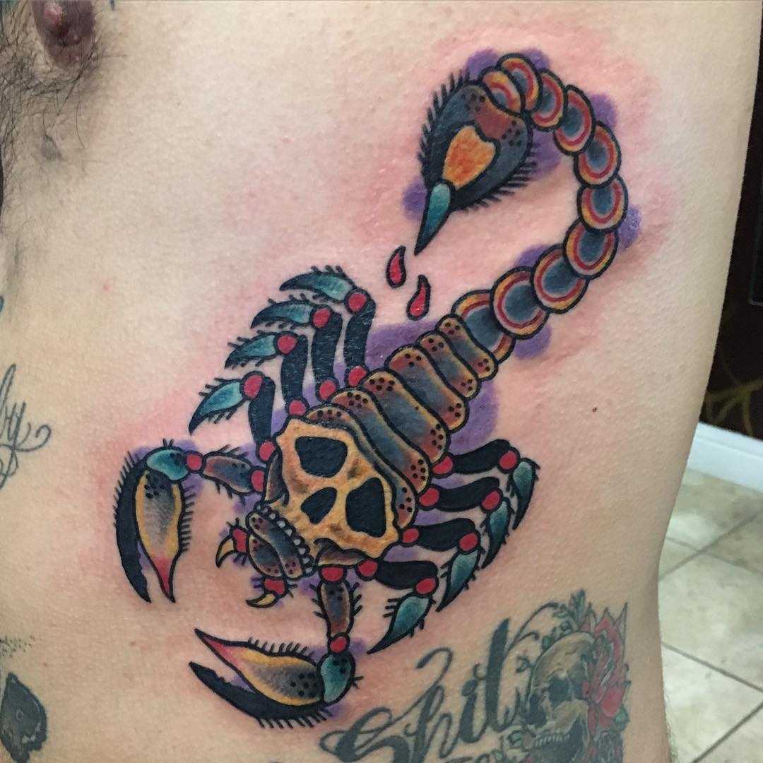 Любые вариации Скорпиона смотрятся очень красиво. Уникальное анатомическое строение туловища этого создания притягивает взгляды, а его зодиакальные качества позволяют оформлять на теле самые разные идеи. В большинстве вариантов эскизы выполняются в чёрно-белых оттенках, но яркие и красочные татуировки также не редкость. Очень популярны изображения созвездия, дополняющиеся по желанию планетами спутниками или разные вариации символа, который выглядит как изогнутая буква «m» со стрелкой. Также подчеркнуть свою принадлежность к этому знаку зодиака можно при помощи латинской надписи «Scorpio»