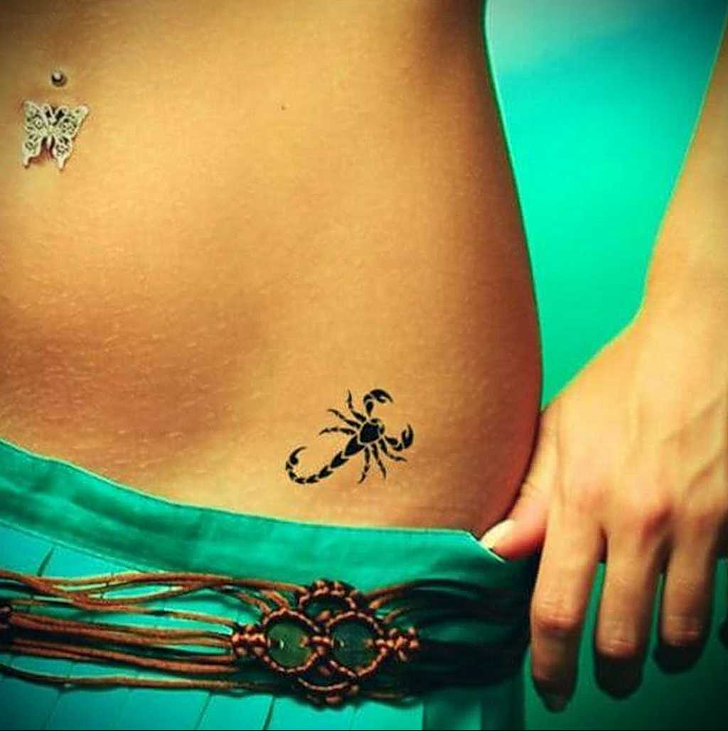 Татуировка с небольшим скорпионом указывает на духовную силу своей обладательницы. Таким изображением на теле девушка стремиться показать окружающим, что готова жать отпор обидчикам. Нередко татуировки со скорпионом не несут никакой смысловой нагрузки, а только указывают на зодиакальную принадлежность обладательницы тату.