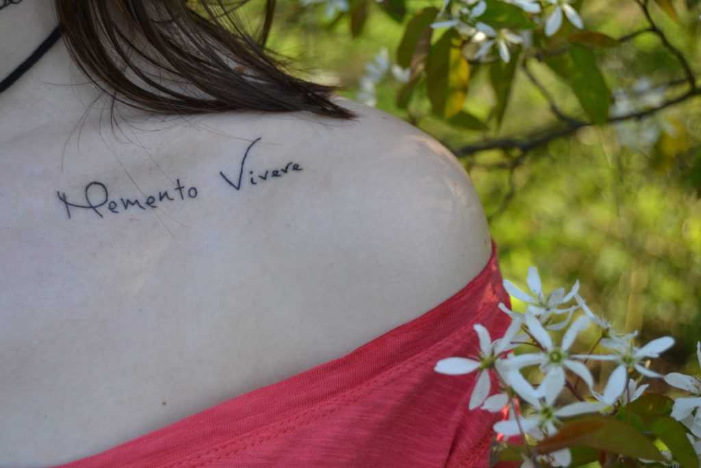 Мудрая надпись тату на латыне «Memento vivere»- помни о жизни