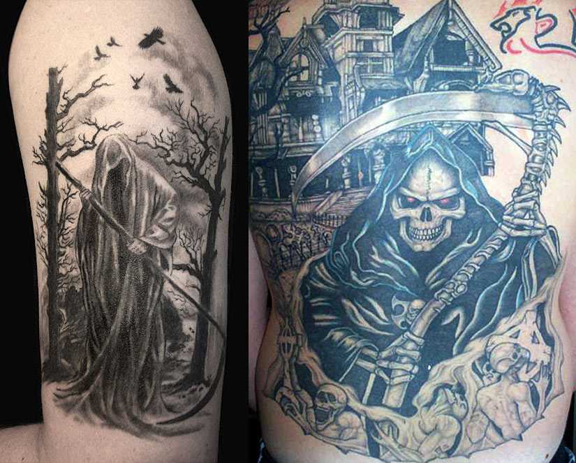 Таким образом, существует множество вариантов изображения смерти с косой на теле. Точно так же, как и множество их значений. Одним словом, расценивать эти татуировки могут по-разному, причем как их владельцы, так и окружающие их люди.