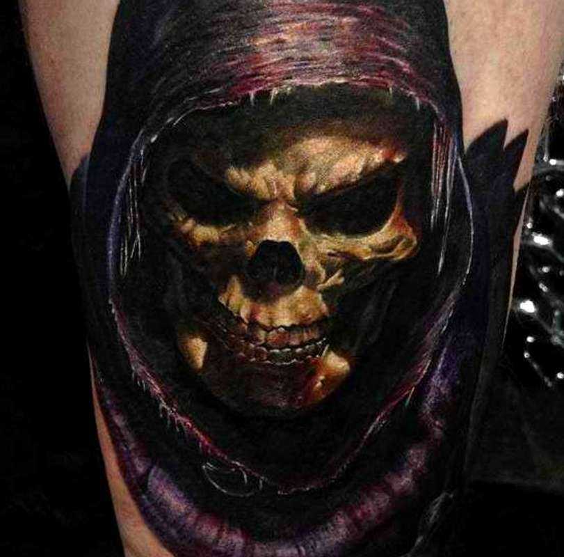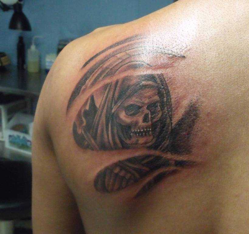 Неподготовленный человек при взгляде на татуировку «Смерть с косой», может всерьез испугаться. Страх смерти вполне естественен для представителей рода человеческого, но некоторые поклонники тату нередко предпочитают этот зловещий образ другим, менее жутким.